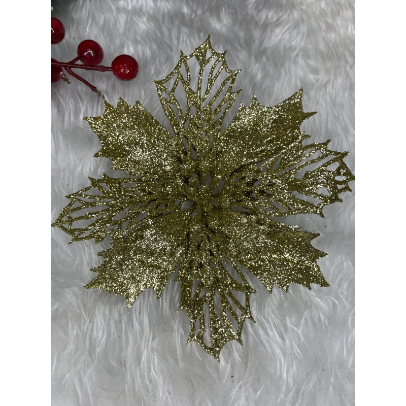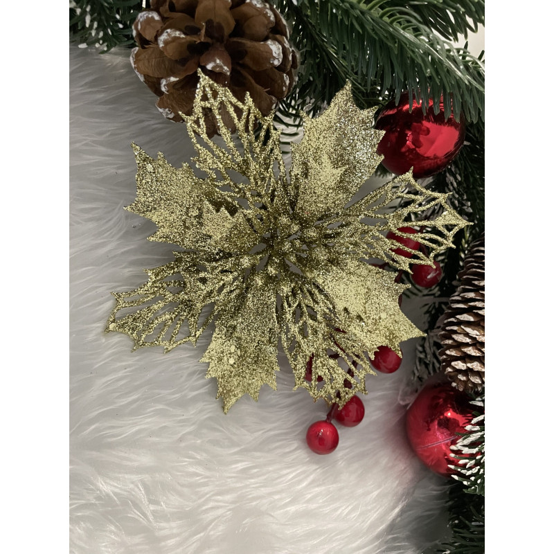 Poinsettia este cunoscuta in intreaga lume si este asociata cu Craciunul. Forma petalelor de poinsettia simbolizeaza steaua biblica a Betleemului, care a aparut adesea in casele noastre de ani de zile ca un decor unic pentru a infrumuseta sarbatoarea Craciunului In ciuda faptului ca este artificiala, poinsettia va incant familia cu farmecul sau. Arata fantastic ca decor pentru o coronita de Craciun. De asemenea, va functiona foarte bine ca floare pentru aranjamentele de masa de Craciun sau ca decorare a ghirlandei. Lungimea diferita a petalelor ajurate face ca floarea mare sa fie mai vizibila si mai incantatoare. Nimeni nu va trece cu indiferenta pe langa el. Lasa-ti imaginatia sa zburde, iesi in evidenta si decoreaza-ti casa cu aceste flori fermecatoare pentru a crea decoratiuni de Craciun de neuitat si, mai ales, de neegalat!