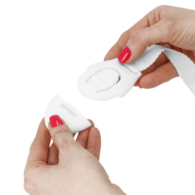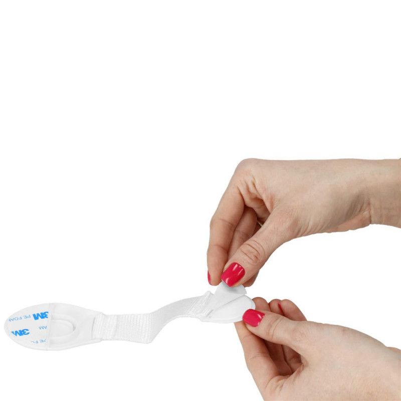Fabricat din materiale de inalta calitate Indepartati praful si umezeala din zona in care va fi instalata incuietoarea. Apasati ferm incuietoarea pe locul de instalare; dupa 24 de ore, adezivul va atinge rezistenta maxima. Lacatul trebuie lipit astfel incat o parte sa fie pe usa si cealalta pe peretele dulapului sau sertarului . Pentru a deschide incuietoarea, tineti apasat elementul de siguranta si apoi ridicati mecanismul de blocare. Mecanismul de blocare se deschide manual. Pentru a bloca siguranta, ridicati din nou dispozitivul de blocare si blocati elementul de inchidere.