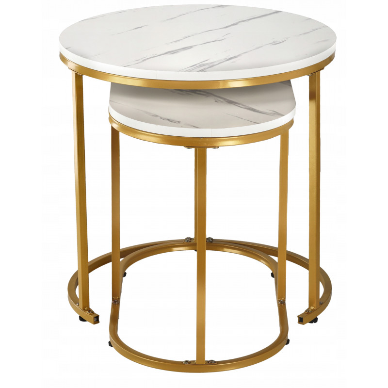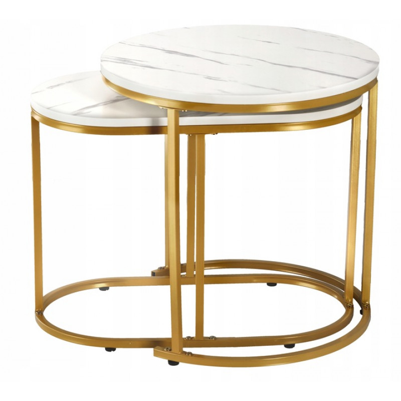 Masa inferioara: 60 x 32 x 44 cm Bucurati-va de designul unic al mesei noastre de cafea din doua piese, care nu numai ca va va oferi un spatiu de depozitare functional, dar va deveni si un element decorativ ingenios al interiorului dvs.Blaturile meselor realizate din imitatie de marmura alba le confera un caracter unic, subliniind in acelasi timp aspectul luxos. Ramele aurii adauga eleganta si fac din masuta de cafea punctul central al oricarei camere.