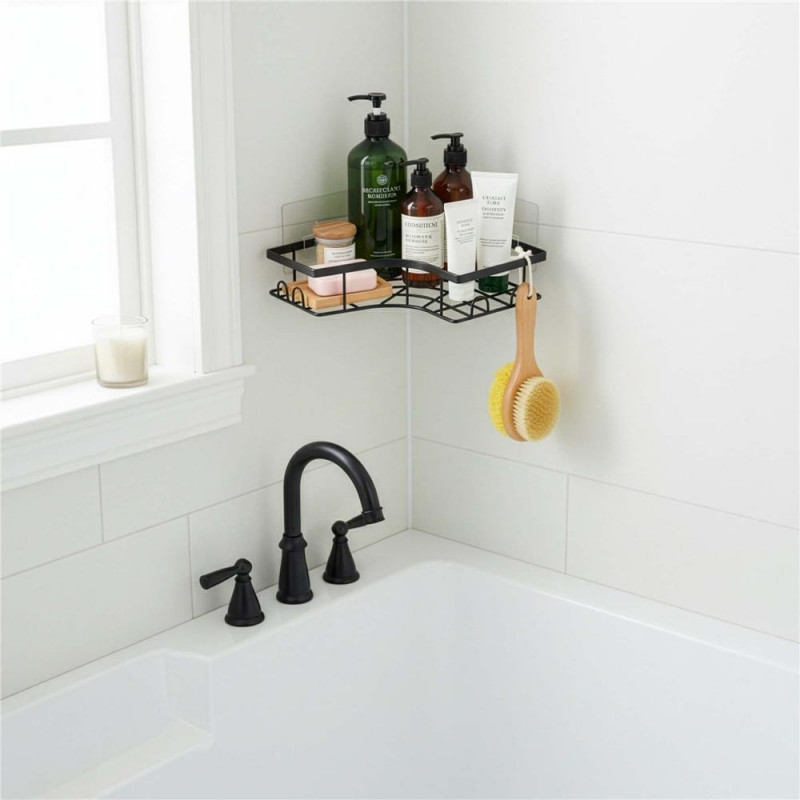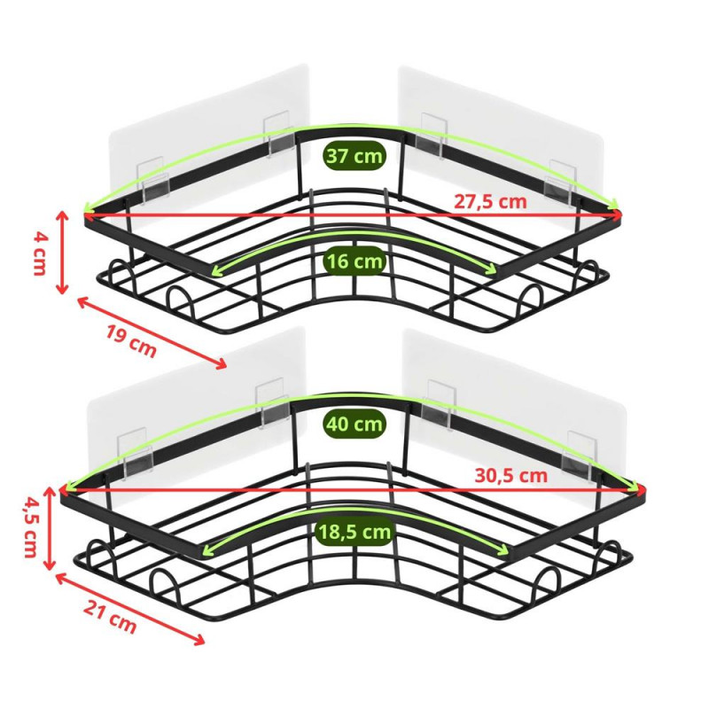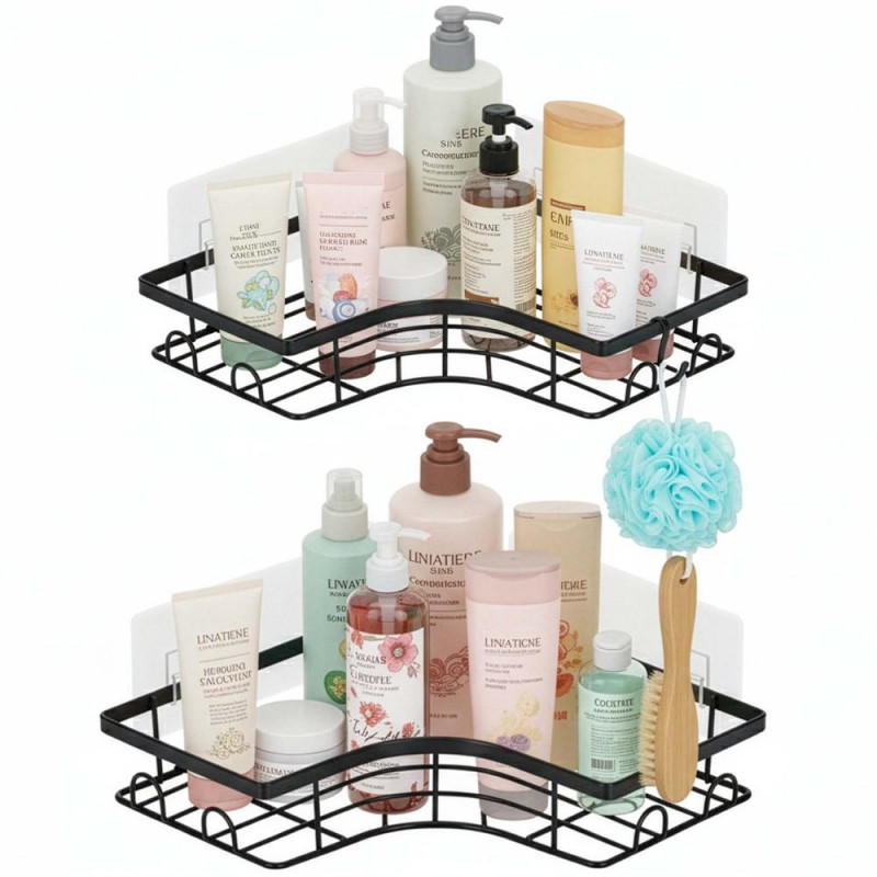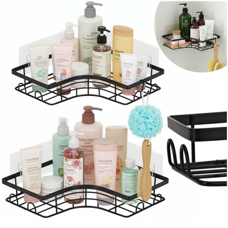 Scurta descriere: Set de doua polite de colt din otel inoxidabil, concepute pentru organizarea eficienta a spatiului fara gaurire. Montajul autoadeziv permite instalarea rapida pe suprafete netede, fiind potrivite pentru baie sau bucatarie.