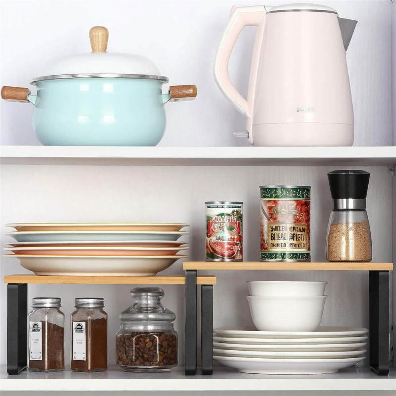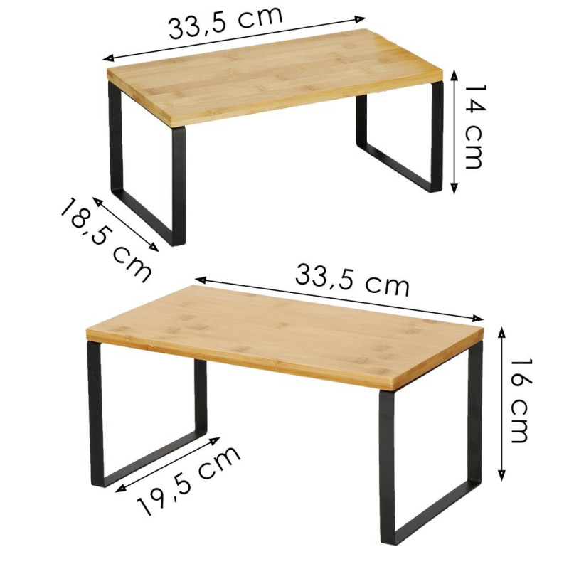 Picioare metalice: 19,5 x 15 x 1,5 cm (L x l x grosime) Despre acest articol Pastrati elementele esentiale de gatit, cum ar fi borcanele de condimente, recipientele, conservele, tacamurile si cartile de bucate organizate, usor de vazut si rapid de gasit cu aceste organizatoare de bucatarie.Fabricat din lemn de inalta calitate si metal, fiecare raft de condimente poate sustine o greutate maxima de 15 kg, astfel incat puteti stoca o multime de provizii pe ele.Cu designul lor unic, aceste organizatoare de rafturi pot fi stivuite unul peste altul, imbinate, folosite separat sau chiar in forma de L. Ajustati-le cum doriti pentru a se potrivi perfect spatiului dvs. din bucatarie.Folositi-le pe biroul din dormitor pentru a va organiza obiectele sau chiar in baie pentru a va depozita articolele esentiale pentru baie.Cu structura lor simpla si
