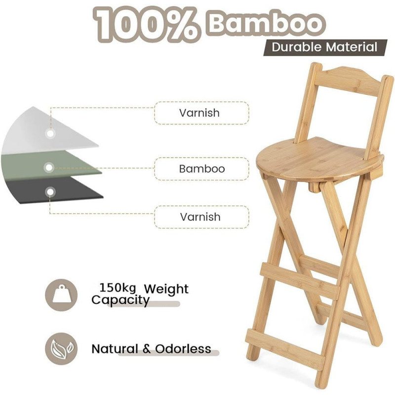 Acest scaun de bar din bambus cu spatar este simplu si versatil, potrivit pentru pub-uri, ghisee, casa, bucatarie, blat de mic dejun, petreceri, terasa.