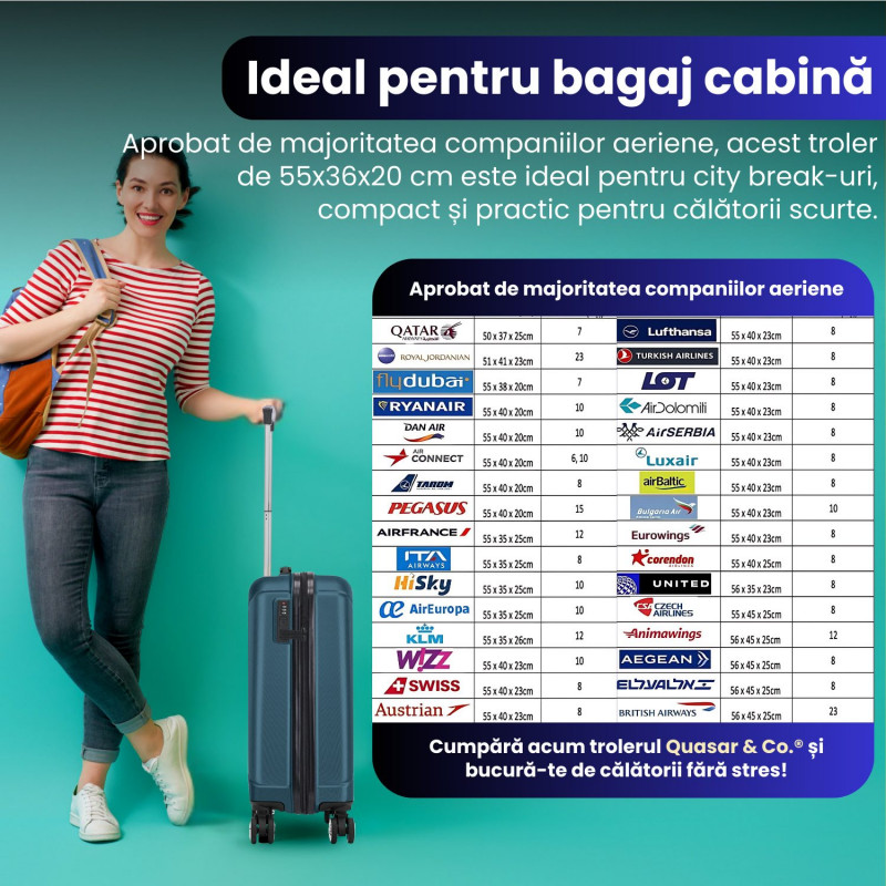 ![Set 2 trolere cabina, Quasar & Co.®, 40x30x20 cm cu roti detasabile si 55x35x20 cm, bagaj de mana, troller cu fermoar antifurt, cifru, maner telescopic lung, geamantan 4 roti duble 360°, valiza ABS 2.8 mm rezistent, 10kg, Smart, Albastru petrol Set 2 trolere cabina, Quasar & Co.®, 40x30x20 cm cu roti detasabile si 55x35x20 cm, bagaj de mana, troller cu fermoar antifurt, cifru, maner telescopic lung, geamantan 4 roti duble 360°, valiza ABS 2.8 mm rezistent, 10kg, Smart, Albastru petrol [8]](https://www.magnetcenter.ro/image/cache/catalog/imported/maxonline/45048033_7-70x70.jpg)