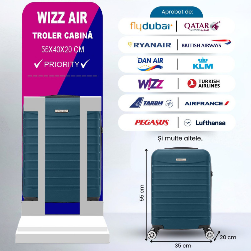 - Dimensiuni optime: Cu dimensiuni de 40 x 30 x 20 cm si 55 x 36 x 20 cm, aceste trolere pot fi utilizate ca bagaj de mana pentru toate companiilor aeriene. (verificati conditiile liniei aeriene inainte de a calatori)