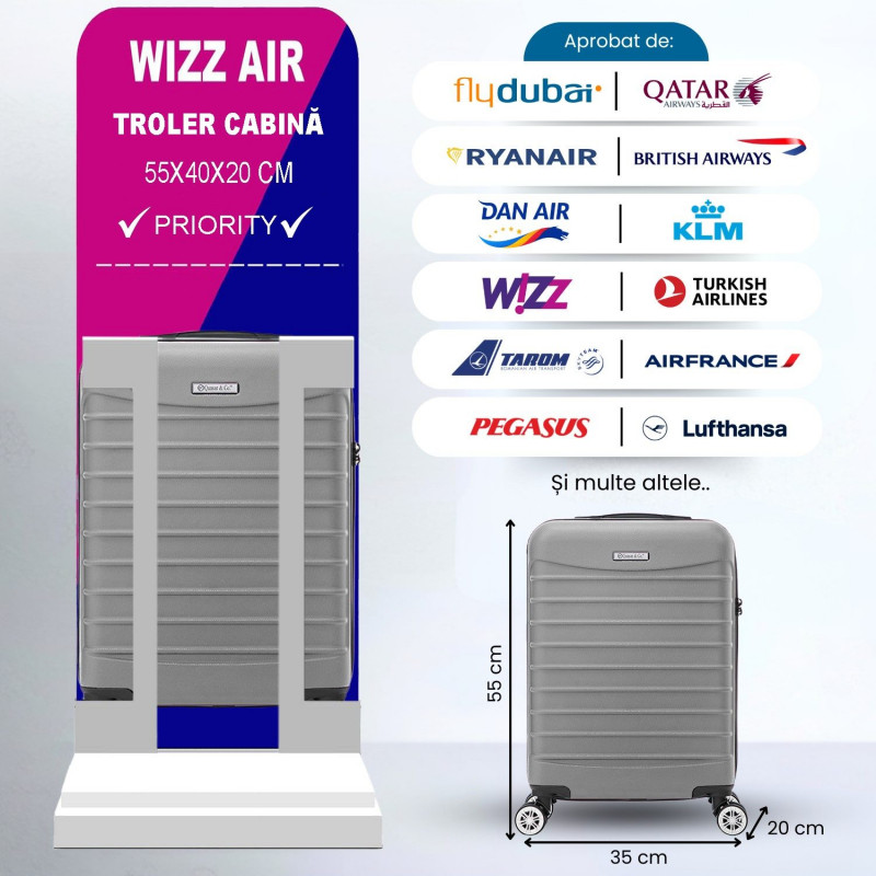 - Dimensiuni optime: Cu dimensiuni de 40 x 30 x 20 cm si 55 x 36 x 20 cm, aceste trolere pot fi utilizate ca bagaj de mana pentru toate companiilor aeriene. (verificati conditiile liniei aeriene inainte de a calatori)
