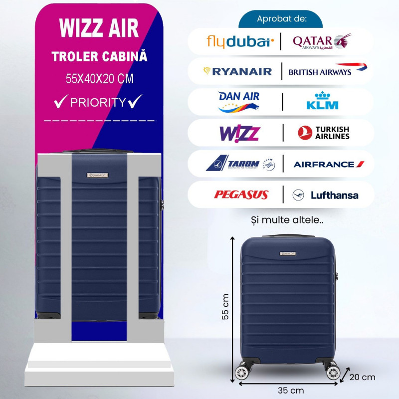 - Dimensiuni optime: Cu dimensiuni de 40 x 30 x 20 cm si 55 x 36 x 20 cm, aceste trolere pot fi utilizate ca bagaj de mana pentru toate companiilor aeriene. (verificati conditiile liniei aeriene inainte de a calatori)