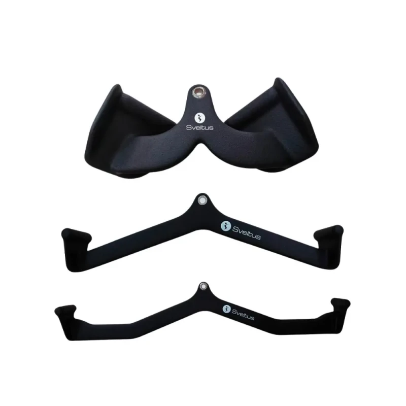 Setul de 3 mânere ergonomice de tracțiune de la Sveltus este conceput pentru a optimiza antrenamentele la cablu, oferind o prindere naturală și confortabilă, ce îmbunătățește performanța și reduce tensiunea asupra articulațiilor.Caracteristici principale:Design ergonomic curbat: forma mânerelelor este adaptată la forma naturală a mâinii, oferind o priză solidă și confortabilă pe toată durata exercițiului.3 dimensiuni diferite:31 cm – ideal pentru tracțiuni înguste (close grip)61 cm – pentru tracțiuni medii83 cm – pentru tracțiuni late (wide grip)Construcție robustă: fabricate din oțel durabil cu finisaj de calitate, pentru utilizare intensă în sală sau acasă.Compatibile cu toate aparatele cu scripete/cablu – ușor de atașat prin carabină.Greutate totală: aprox. 8 kg (2 kg, 2,5 kg și 3,5 kg fiecare mâner).Beneficii:Permite o contracție musculară mai eficientă, în special pentru spate, bicepși și umeri.Reduce riscul de accidentări datorită prinderii naturale și stabile.Oferă versatilitate în antrenamente – de la ramat, la tracțiuni la piept și exerciții pentru biceps/triceps.Ideal pentru utilizatori de orice nivel: începători, avansați sau sportivi de performanță.Pentru cine este potrivit acest kit?Acest kit este perfect pentru:Săli de fitness profesionaleStudio-uri personaleUtilizatori acasă care doresc echipament de calitate superioarăSveltus Kit de 3 mânere ergonomice este un accesoriu esențial pentru antrenamente eficiente și sigure, care combină ergonomia, durabilitatea și performanța într-un singur pachet versatil.
