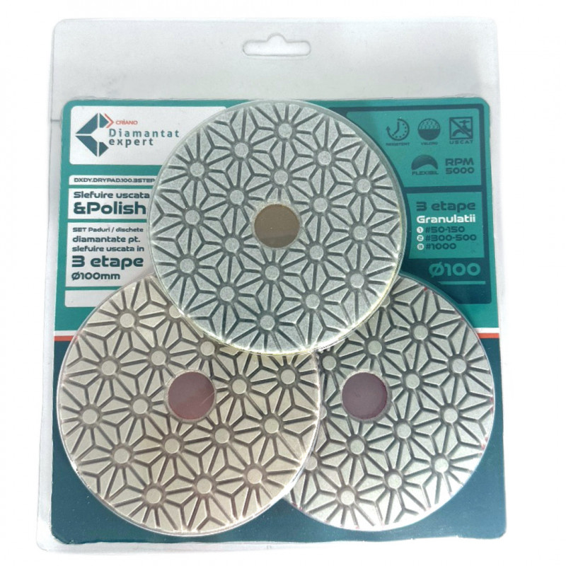 Descriere: Discuri diamantate pentru slefuiri, de o calitate ridicata, pentru aplicatii uscate.