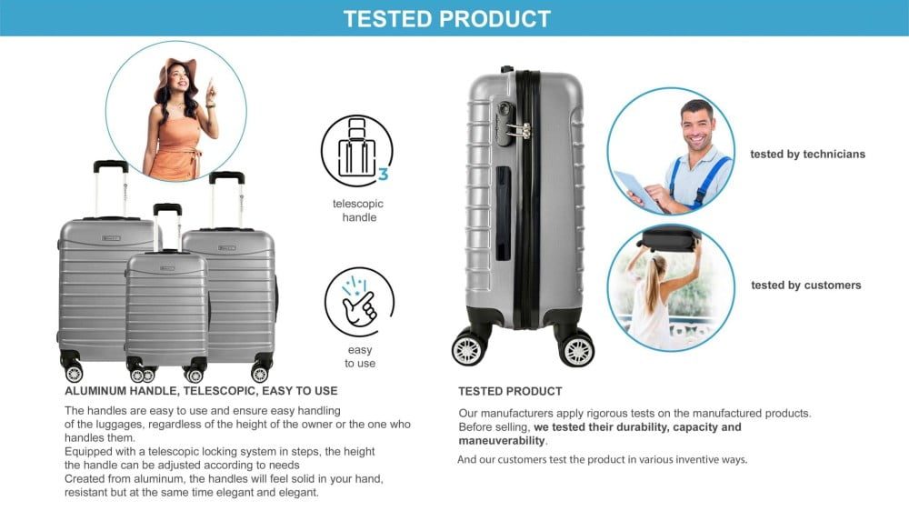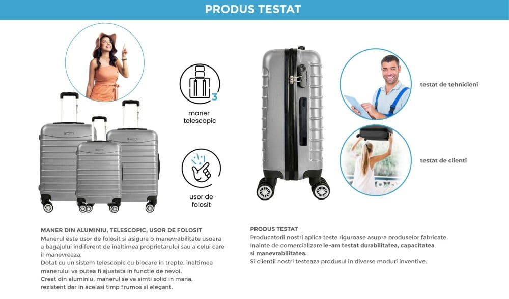 Manerul este usor de folosit si asigura o manevrabilitate usoara a bagajului, indiferent de inaltimea proprietarului sau a celui care il manevreaza.
