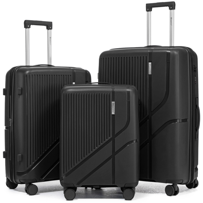 Perfecte pentru calatorii cu avionul, setul de 3 trolere Model AERO, cu dimensiunile de 56x37x23 cm, 66x43x27-31 cm si 76x47x32-35 cm dispune de 4 roti duble cu rotatie de 360° pentru manevrabilitate usoara. Fabricate din Polipropilena rezistenta, au manere telescopice, cifru si fermoare antifurt pentru siguranta.