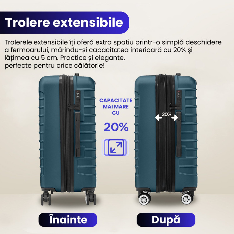 ![Set 3 trolere Quasar & Co.®, S/M/L, valize cu fermoar antifurt, bagaje cu cifru, maner telescopic, geamantane cu 4 roti duble silentioase 360°, ABS 2.8 mm extradur, captuseala buretata, cate 2 compartimente cu buzunar, LINE, albastru petrol Set 3 trolere Quasar & Co.®, S/M/L, valize cu fermoar antifurt, bagaje cu cifru, maner telescopic, geamantane cu 4 roti duble silentioase 360°, ABS 2.8 mm extradur, captuseala buretata, cate 2 compartimente cu buzunar, LINE, albastru petrol [7]](https://www.magnetcenter.ro/image/cache/catalog/imported/maxonline/44048013_6-70x70.jpg)