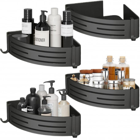 Setul de patru etajere de colț Quasar & Co.® oferă o soluție versatilă și eficientă pentru organizarea spațiilor din locuința ta. Fabricate din aluminiu rezistent, aceste etajere sunt echipate cu 8 cârlige, perfecte pentru a agăța obiecte mici, cum ar fi prosoape, ustensile de bucătărie sau accesorii. Cu dimensiuni de 21 x 21 x 6,8 cm, aceste etajere sunt ideale pentru a depozita și expune obiecte într-un mod practic și stilat. Designul lor gri metalizat adaugă o notă modernă și rafinată în orice încăpere.