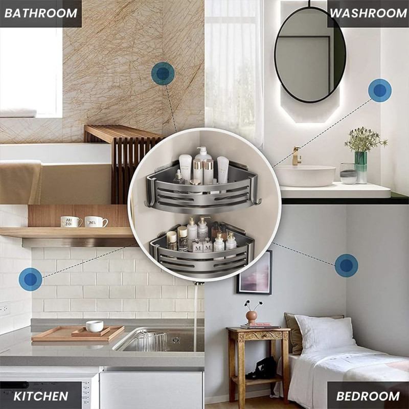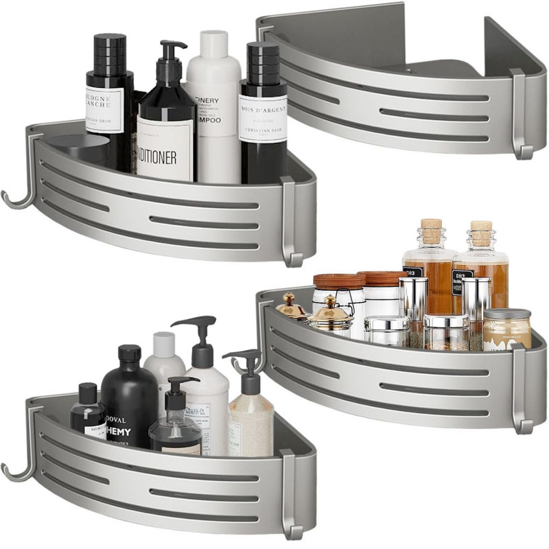 Setul de patru etajere de colț Quasar & Co.® oferă o soluție versatilă și eficientă pentru organizarea spațiilor din locuința ta. Fabricate din aluminiu rezistent, aceste etajere sunt echipate cu 8 cârlige, perfecte pentru a agăța obiecte mici, cum ar fi prosoape, ustensile de bucătărie sau accesorii. Cu dimensiuni de 21 x 21 x 6,8 cm, aceste etajere sunt ideale pentru a depozita și expune obiecte într-un mod practic și stilat. Designul lor gri metalizat adaugă o notă modernă și rafinată în orice încăpere.