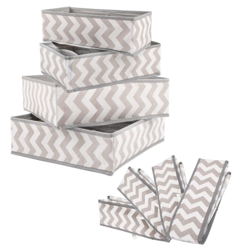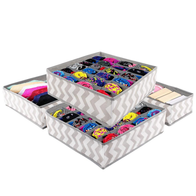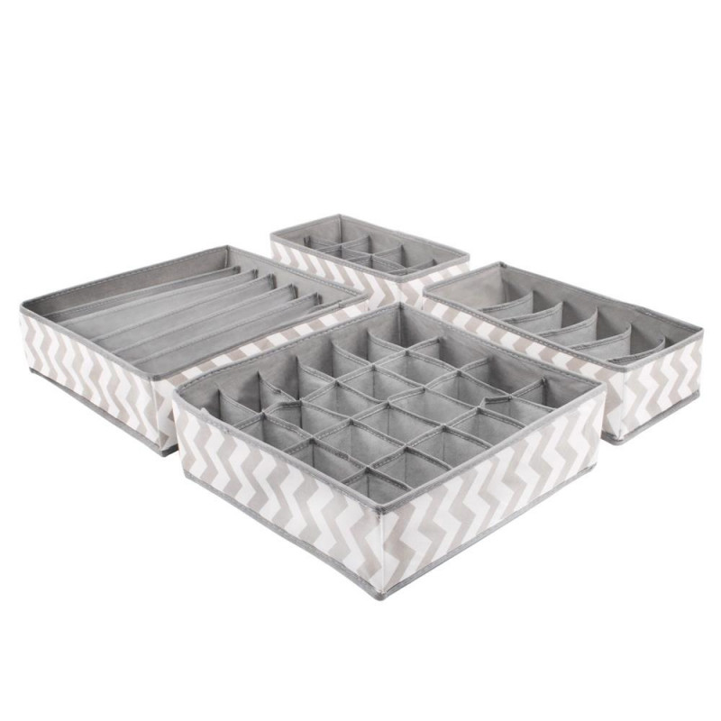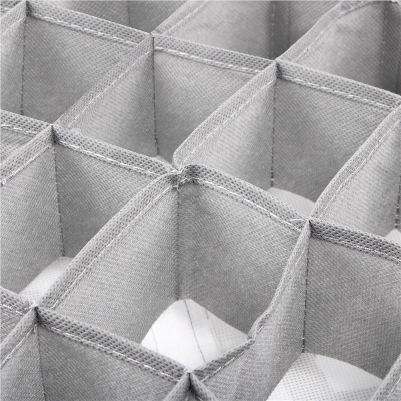 Acest separator de sertar pentru cutie de depozitare este special conceput pentru a organiza sutiene, sosete, lenjerie si cravate. Le puteti plasa in dulapuri inalte, sertare lungi sau dulapuri de dormitor pentru a organiza eficient articolele in grupuri usor accesibile. Cutiile de organizare a sertarelor cu sistem de depozitare sunt realizate din tesaturi netesute imbunatatite, care sunt rezistente la molii, stabile dimensional, rezistente la umiditate si foarte rezistente la uzura, cu carton gri nou in interior pentru a face cutia stabila si pentru a evita deformarea. Cutia de depozitare este respirabila si prietenoasa cu pielea, potrivita pentru depozitare pe termen lung. Organizatorul nostru din 4 piese este disponibil in patru dimensiuni pentru a se potrivi diferitelor cerinte organizationale. Organizator pentru sosete, pentru esarfe, pentru cravate si organizator pentru sutiene.Cutia organizatoare pliabila ofera o solutie convenabila de depozitare pentru garderoba dvs. si este usor de transportat si organizat. Lenjeria, ciorapii, cravatele, sutienele si alte articole mici isi au intotdeauna locul lor. Organizator mare cu 24 de compartimente patrate: latime: 33 cmlungime: 33 cminaltime: 10 cm Organizator mare cu 7 compartimente longitudinale: latime: 33 cmlungime: 33 cminaltime: 10 cm Organizator mic cu 8 compartimente patrate: latime 14 cmlungime 28 cminaltime 10 cm Organizator mic cu 6 compartimente longitudinale: latime 15 cmlungime 33 cminaltime 10 cm