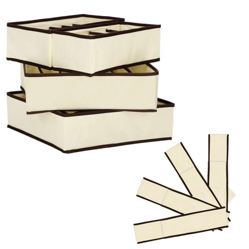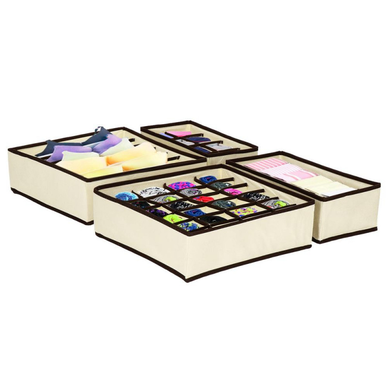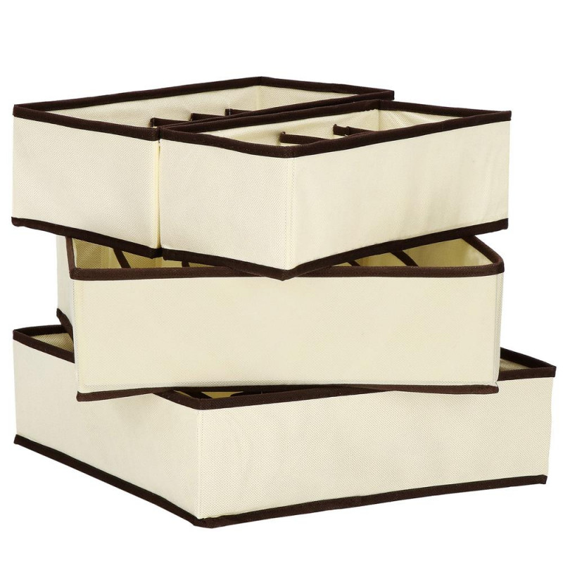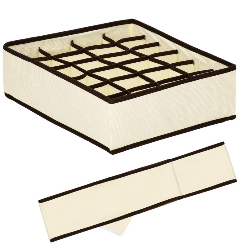 Acest separator de sertar pentru cutie de depozitare este special conceput pentru a organiza sutiene, sosete, lenjerie si cravate. Le puteti plasa in dulapuri inalte, sertare lungi sau dulapuri de dormitor pentru a organiza eficient articolele in grupuri usor accesibile. Cutiile de organizare a sertarelor cu sistem de depozitare sunt realizate din tesaturi netesute imbunatatite, care sunt rezistente la molii, stabile dimensional, rezistente la umiditate si foarte rezistente la uzura, cu carton gri nou in interior pentru a face cutia stabila si pentru a evita deformarea. Cutia de depozitare este respirabila si prietenoasa cu pielea, potrivita pentru depozitare pe termen lung. Organizatorul nostru din 4 piese este disponibil in patru dimensiuni pentru a se potrivi diferitelor cerinte organizationale. Organizator pentru sosete, pentru esarfe, pentru cravate si organizator pentru sutiene.Cutia organizatoare pliabila ofera o solutie convenabila de depozitare pentru garderoba dvs. si este usor de transportat si organizat. Lenjeria, ciorapii, cravatele, sutienele si alte articole mici isi au intotdeauna locul lor. Organizator mare cu 24 de compartimente patrate: latime: 33 cmlungime: 33 cminaltime: 10 cm Organizator mare cu 7 compartimente longitudinale: latime: 33 cmlungime: 33 cminaltime: 10 cm Organizator mic cu 8 compartimente patrate: latime 14 cmlungime 28 cminaltime 10 cm Organizator mic cu 6 compartimente longitudinale: latime 15 cmlungime 33 cminaltime 10 cm
