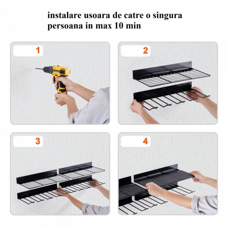 Fabricat din otel carbon durabil, fiecare raft poate suporta pana la 10kg,