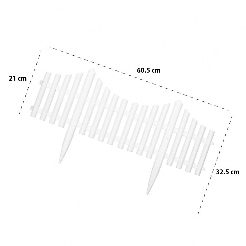 Scurta descriere: Garduletul decorativ pentru gradina este solutia practica pentru delimitarea si protejarea straturilor de flori, a gazonului sau a aleilor. Setul contine 4 piese interconectabile, care se monteaza usor prin infigere directa in pamant, datorita tarusilor integrati. Realizat din polipropilena rezistenta, garduletul poate fi reutilizat ani la rand si este potrivit pentru gradina, curte sau terasa. Designul alb adauga un aspect ingrijit si ordonat spatiului exterior.