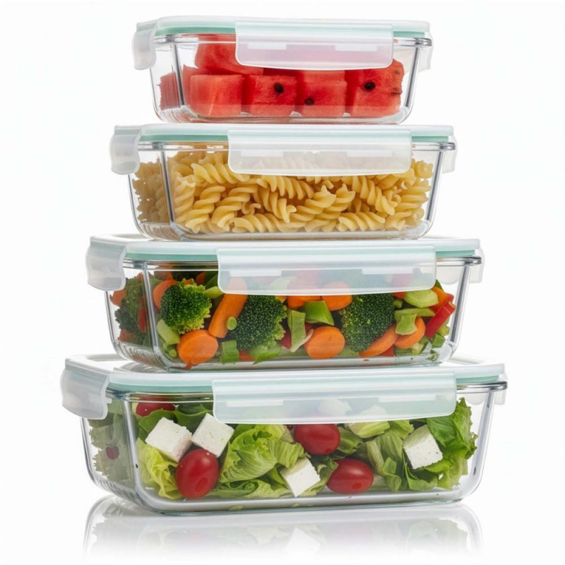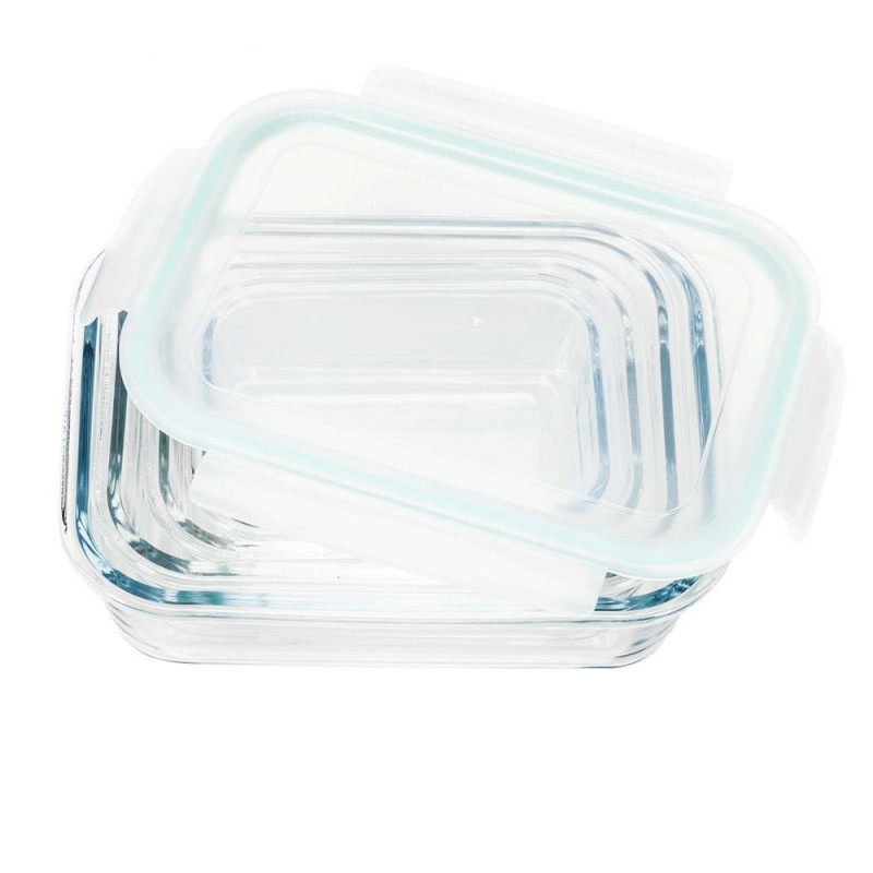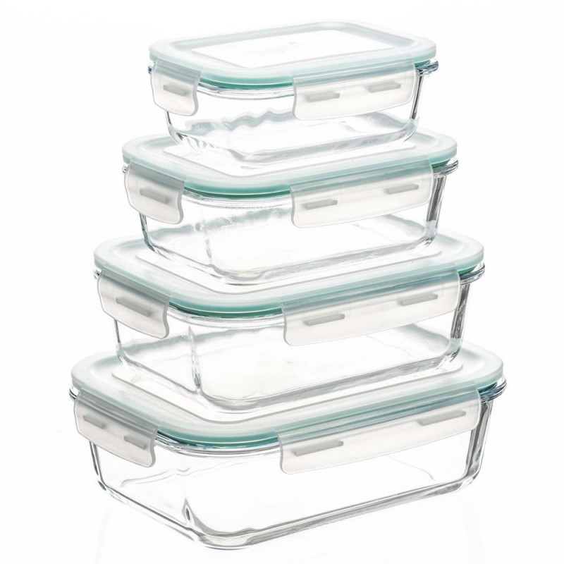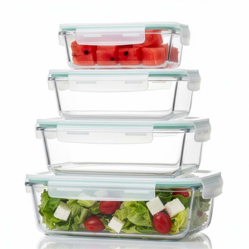 Scurta descriere Set de 4 recipiente din sticla termorezistenta, concepute pentru depozitarea, pastrarea si incalzirea alimentelor. Capacele din plastic sunt prevazute cu garnitura din silicon pentru inchidere etansa, prevenind scurgerile. Recipientele sunt sigure pentru contactul cu alimentele, nu contin BPA si rezista la temperaturi ridicate. Pot fi utilizate in masina de spalat vase, congelator si cuptor cu microunde fara capac, fiind ideale pentru uz zilnic.