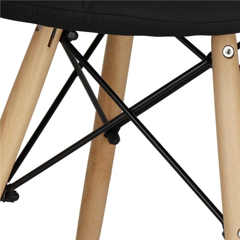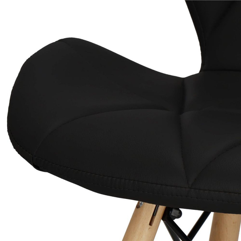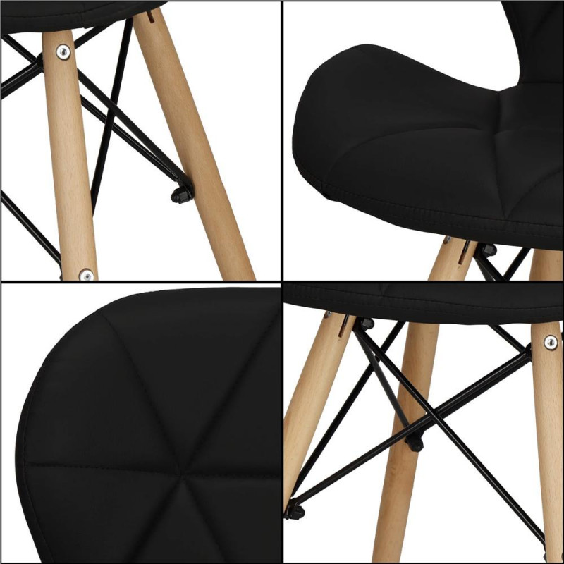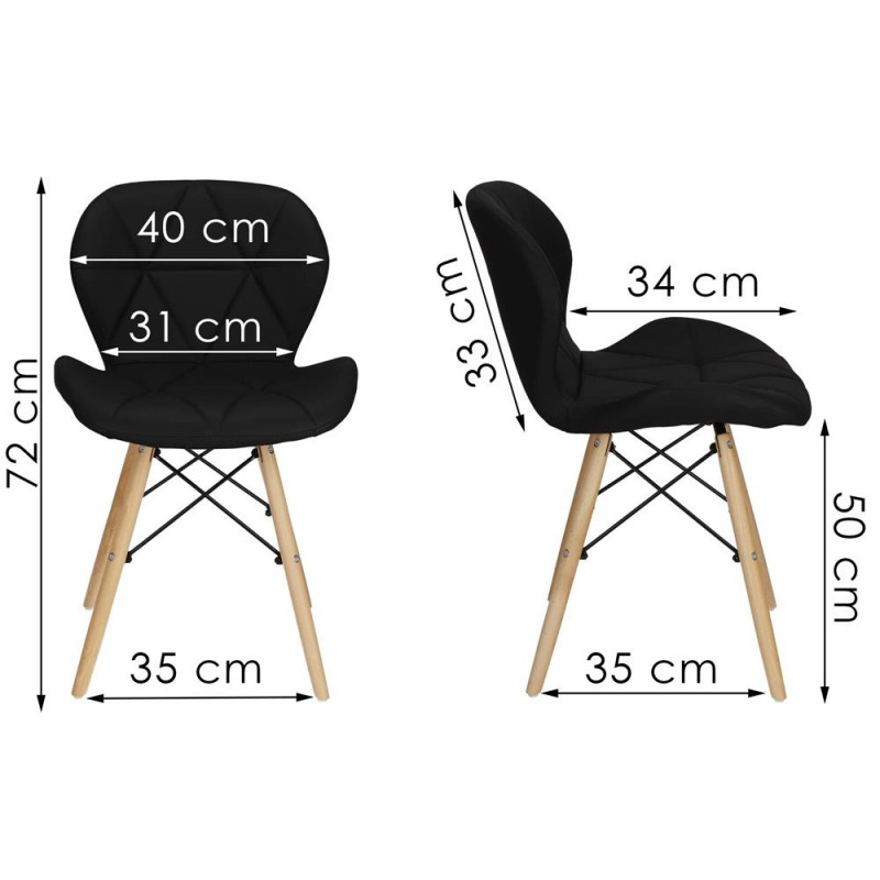 Capacitate de incarcare: 125 kg Scaunul are un sezut tapitat cu piele ecologica, cu forme decupate interesante pe partile laterale. Picioarele sunt realizate din lemn masiv natural de fag – asigurand rezistenta si stabilitate in timpul utilizarii, in timp ce imbinarile negre intaresc intregul cadru si sunt, de asemenea, decorative. Design-ul unic, cu aspect deosebit, se potriveste perfect intr-un cadru glamour, clasic sau modern. Tapiteria din poliester ofera confort, fiind foarte moale si placuta la atingere. Acest material nu cauzeaza alergii.