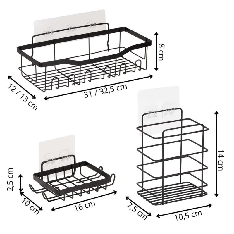 Scurta descriere: Set de polite metalice cu montaj autoadeziv, conceput pentru organizarea eficienta a spatiului fara gaurire. Ideal pentru depozitarea accesoriilor in baie, bucatarie sau alte spatii unde este nevoie de ordine si acces rapid.