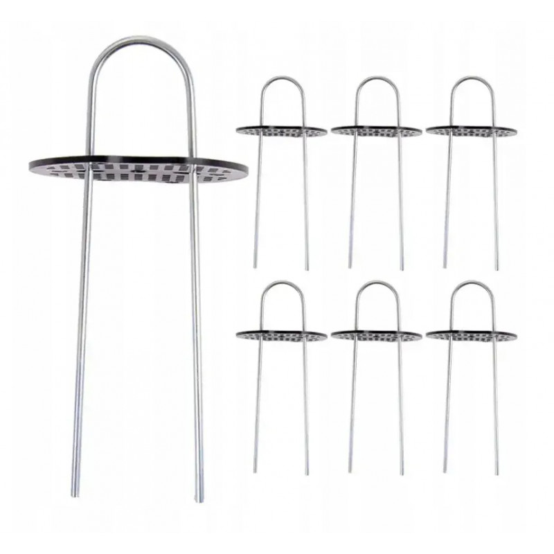 Scurta descriere: Setul de 6 pini pentru ancorarea agrotextilului este ideal pentru fixarea sigura a tesaturilor agricole, agrotextilului sau materialelor geocompozite direct pe sol. Sunt eficienti in special in conditii de vant, prevenind deplasarea sau ridicarea materialului si asigurand o fixare stabila si durabila. Constructia din metal rezistent, combinata cu elemente din plastic, ofera o utilizare indelungata in exterior.