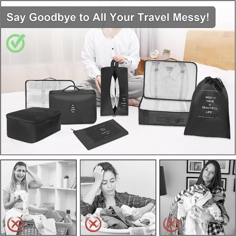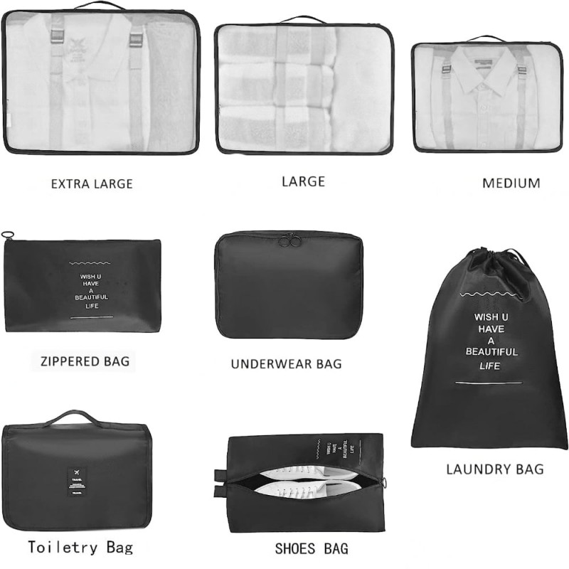 - Setul organizator de voiaj cu 8 compartimente este o solutie de neinlocuit pentru depozitarea si transportul lucrurilor.