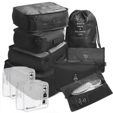 Setul organizator de voiaj cu opt compartimente Quasar & Co. este confectionat dintr-un material rezistent si usor de curatat. Forma compartimentelor de dimensiuni diferite ajuta sa ai toate obiectele in ordine. Setul Quasar & Co. este un organizator de bagaje foarte potrivit pentru concedii. Compartimentele au fermoare de inchidere pentru a pastra totul in siguranta. Poti pune: hainele, accesoriile vestimentare, cartile, incaltamintea, machiajul, electronicele si altele.