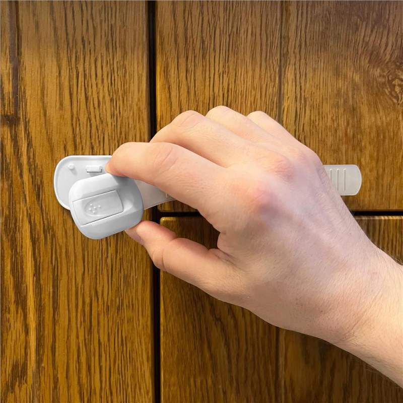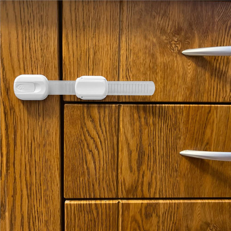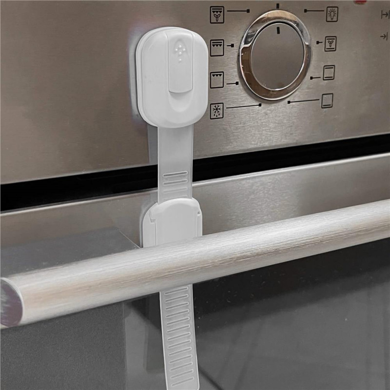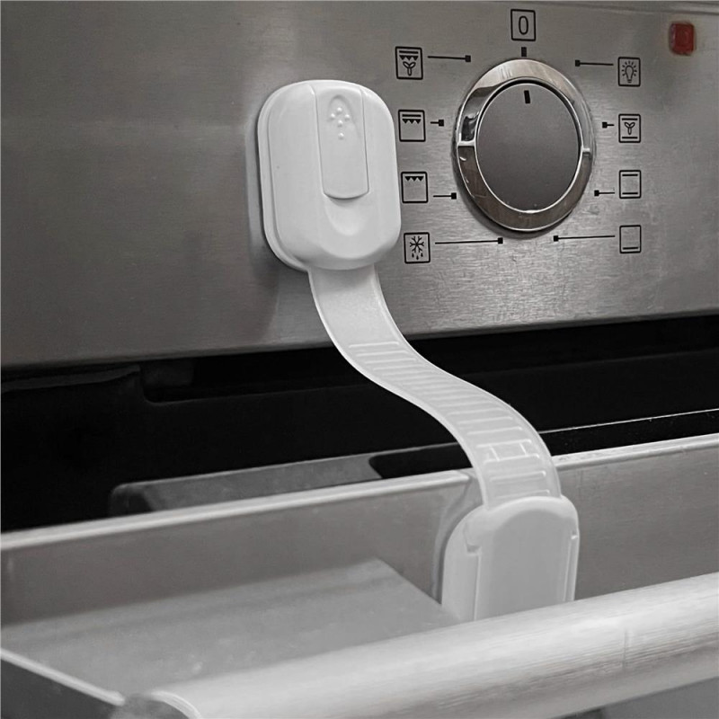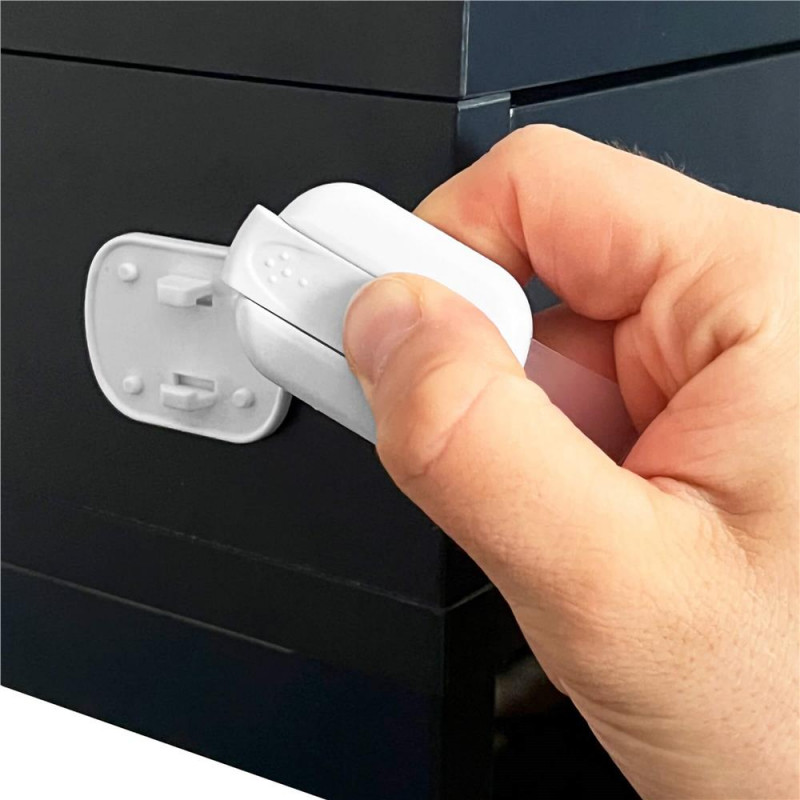 Fabricat din materiale de inalta calitate Indepartati praful si umezeala din zona in care va fi instalata incuietoarea. Apasati ferm incuietoarea pe locul de instalare; dupa 24 de ore, adezivul va atinge rezistenta maxima. Lacatul trebuie lipit astfel incat o parte sa fie pe usa si cealalta pe peretele dulapului sau sertarului. Protectia este echipata cu reglare a lungimii . Doar ajustati dimensiunea necesara si apoi folositi foarfecele pentru a taia banda in exces. Pentru a deschide incuietoarea, tineti apasat elementul de siguranta si apoi ridicati mecanismul de blocare. Mecanismul de blocare se deschide manual. Pentru a bloca siguranta, ridicati din nou dispozitivul de blocare si blocati elementul de inchidere.