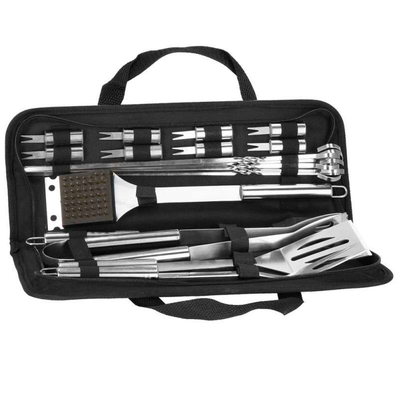 Husa practica: Husa eleganta din nailon asigura depozitare si transport convenabil. Setul de accesorii pentru gratar se va dovedi util nu numai in timpul sezonului de gratar, ci si in bucatarie atunci cand prajiti, afumati sau preparati o varietate de feluri de mancare. Fiecare element are un carlig de agatat pentru accesibilitate si utilizare usoara.