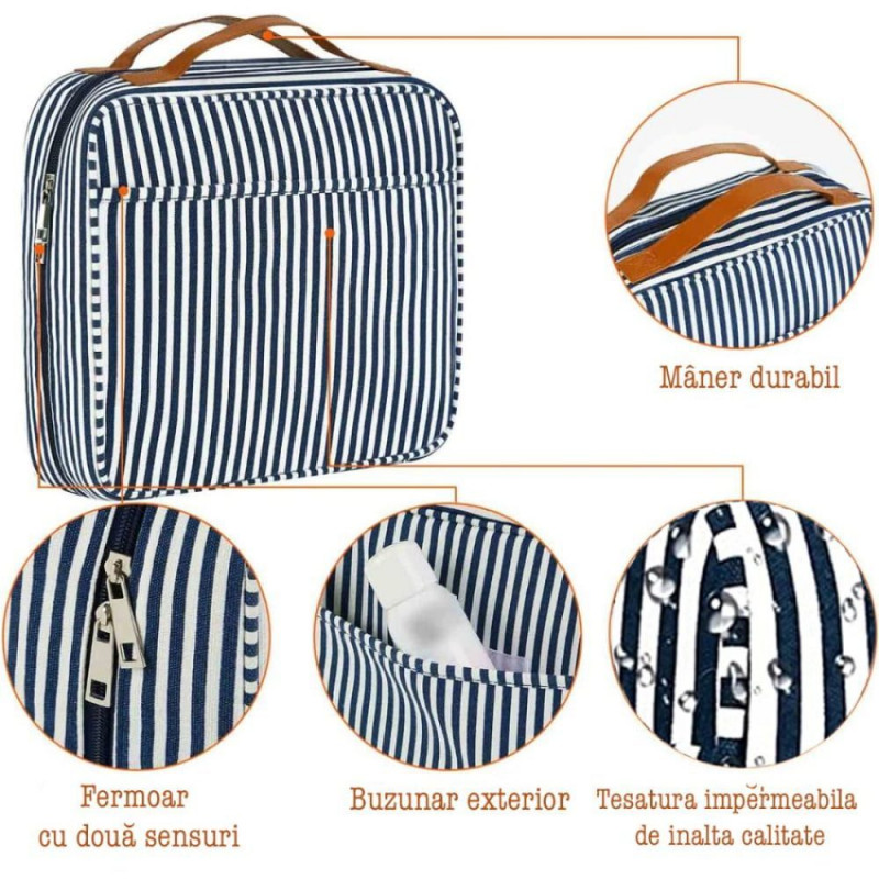 | Caracteristici cheie | Agatatoare, Calatorie, Fermoar, Potrivita pentru femei si barbati, Usor de depozitat, Recipiente rezistente la scurgeri / reincarcabile |