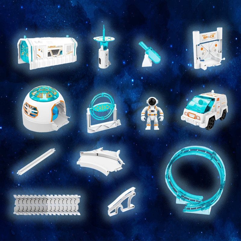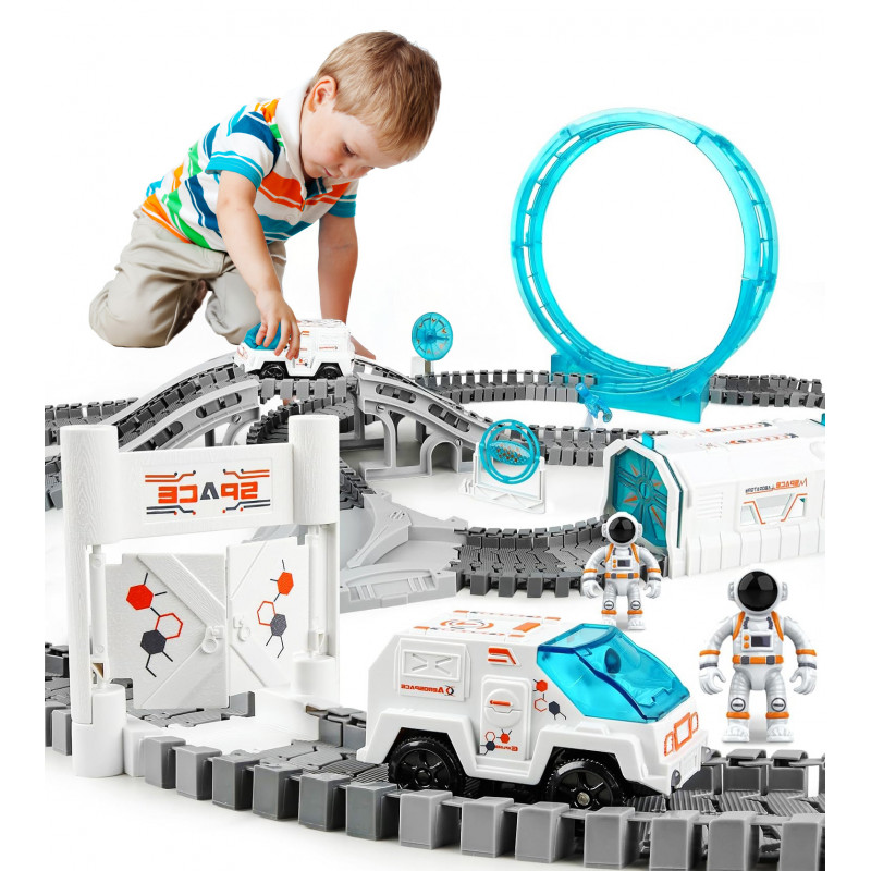 Scurta descriere Setul de constructii cu traseu auto spatial include 205 piese si le permite copiilor sa creeze propriul parcurs inspirat din explorarea cosmosului. Cu astronauti, un vehicul electric, tunel laborator si cupola, jocul stimuleaza creativitatea si logica. Piesele se imbina usor, iar proiectele pot fi modificate de fiecare data pentru o joaca variata.