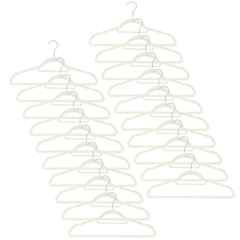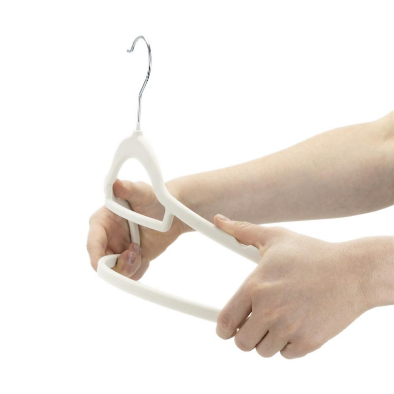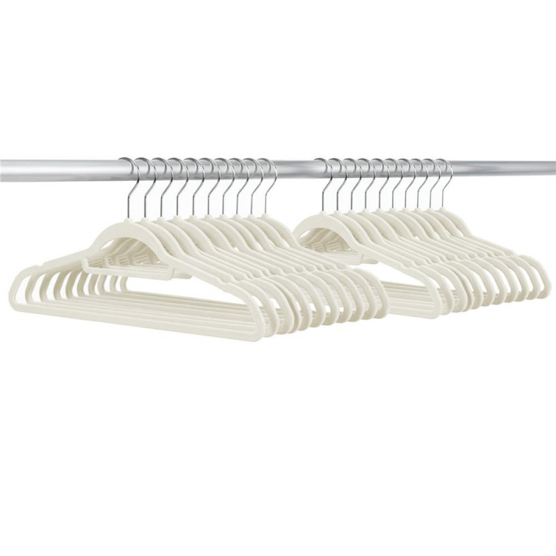 Scurta descriere Set de 20 umerase pentru haine, realizate din velur moale, concepute pentru protejarea si organizarea eficienta a garderobei. Suprafata catifelata previne alunecarea hainelor si ajuta la mentinerea acestora in pozitie corecta. Carligele rotative la 360° permit utilizarea usoara in orice tip de dulap, fiind potrivite pentru haine delicate sau usoare.