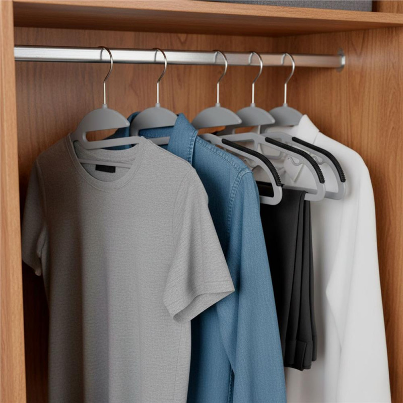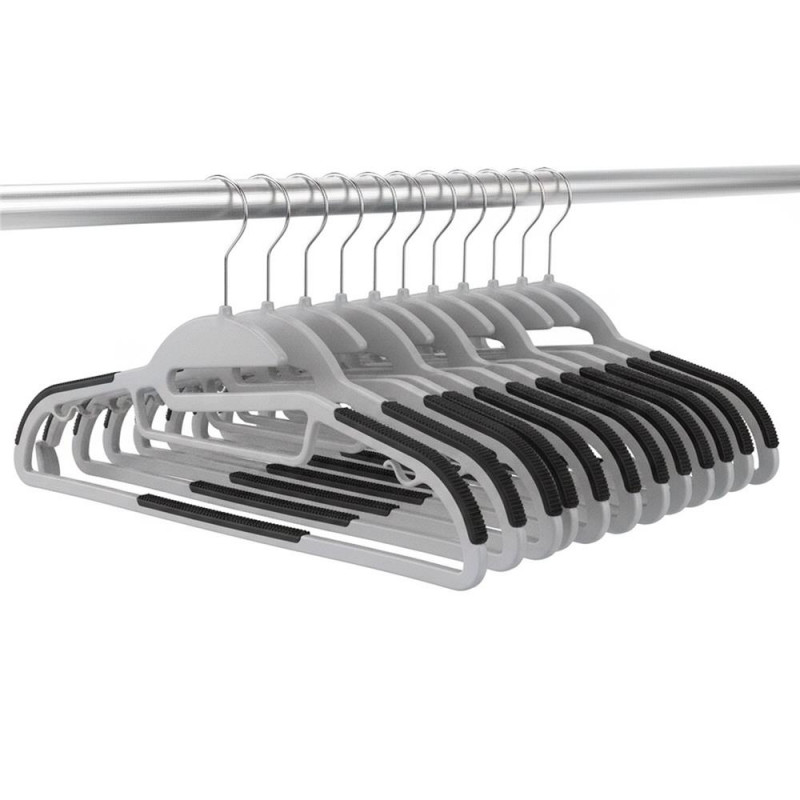 Scurta descriere Set de 30 umerase pentru haine, realizate din material PE rezistent, concepute pentru organizarea eficienta a garderobei. Forma ergonomica ajuta la mentinerea hainelor fara deformare, iar suprafetele antiderapante de pe umeri si bara inferioara previn alunecarea. Carligele metalice rotative la 360° permit utilizarea flexibila, iar carligele interioare sunt utile pentru bretele sau accesorii.