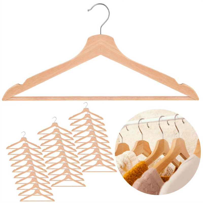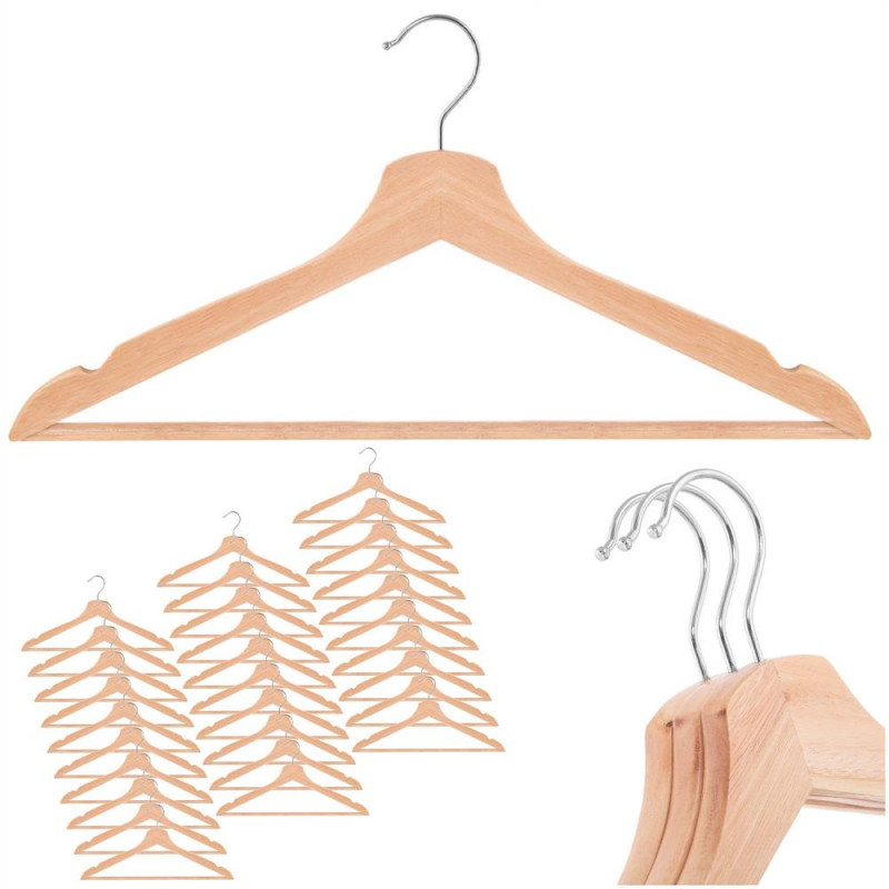 Scurta descriere Set de 30 umerase pentru haine, realizate din lemn, concepute pentru organizarea eficienta a garderobei. Forma ergonomica si decupajele laterale ajuta la mentinerea hainelor in pozitie corecta, fara alunecare. Carligele metalice cromate, rotative la 360°, permit utilizarea practica in orice tip de dulap. Constructia solida asigura durabilitate in utilizare zilnica.