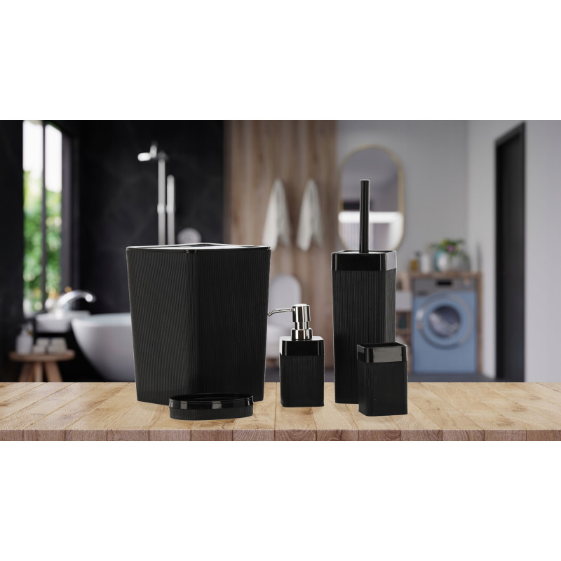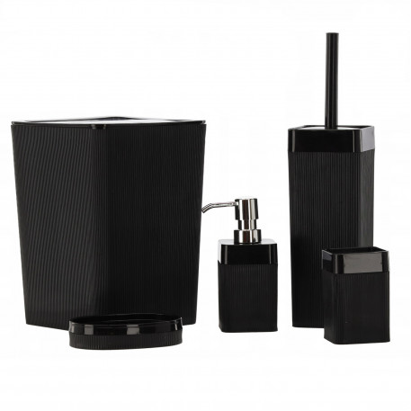 SET DE BAIE PATRAT 5 ELEMENTE Setul de baie este o combinatie moderna si foarte convenabila. Este cu siguranta un set ce nu poate lipsi din baia ta. In acest set de 5 piese exista literalmente tot ce aveti nevoie pentru baie. Setul a fost creat pentru toti cei care apreciaza eleganta combinata cu simplitatea si confortul. Robust, stabil, usor de utilizat si care economiseste spatiu, setul este fabricat din plastic de inalta calitate. SETUL CUPRINDE: Cos de gunoi Perie de toaleta Dozator de sapun Cupa pentru peria de toaleta Suport pentru sapun