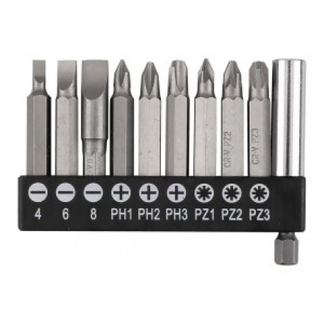 Set de biti SL4/6/8, PH1/2/3, PZ1/2/3 x 50 mm, cu suport magnetic 60 mm, 10 buc.