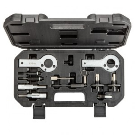 Set de blocare a distributiei diesel Fiat/GM NEO este un set de unelte pentru blocarea angrenajelor de distributie la automobilele Fiat si GM.Kitul include componente pentru blocarea distributiei la motoarele diesel. Acesta ofera instrumente de baza pentru reglarea si blocarea motorului. Ambalat intr-o husa de transport