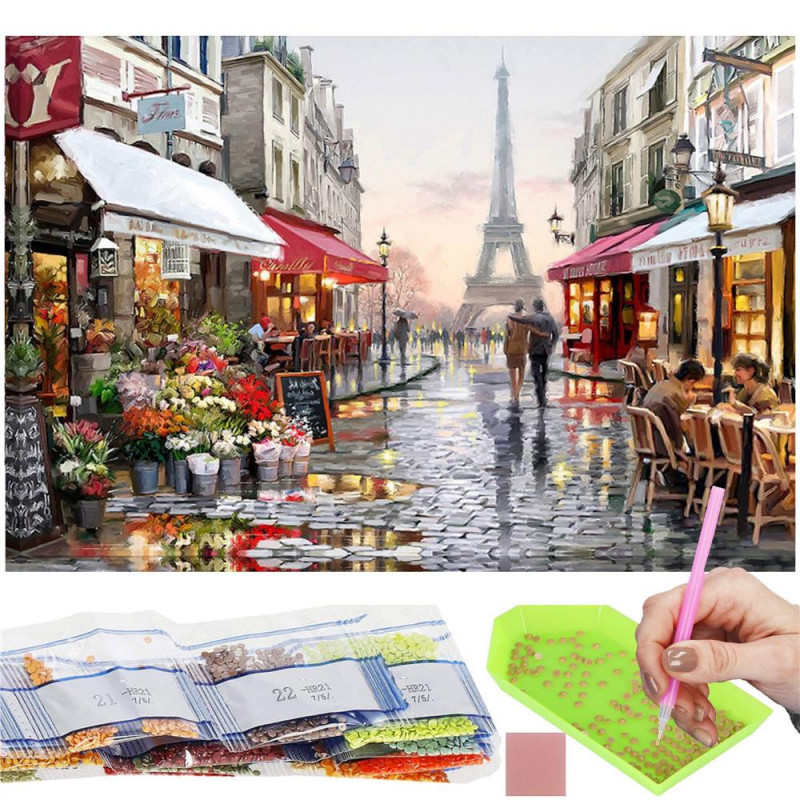 Gata! primul diamant este deja aplicat! Panza este protejata cu folie pentru a nu deteriora stratul de lipici. Daca intentionati sa lucrati la pictura cu diamant timp de mai multe seri, va recomandam sa o dezlipiti treptat pe masura ce progresati.Pentru o mai buna fixare a diamantelor pe panza, va recomandam sa le presati usor dupa ce le asezati intr-o anumita pozitie. Trusa noastra are multe