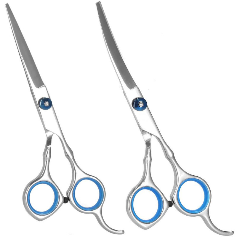 Potrivit si pentru alte animale , de exemplu pisici si iepuri de rase cu par lung Foarfecele sunt perfect conturate pentru confort si usurinta in utilizare. Insertiile speciale antiderapante din manere asigura o munca sigura si precisa. Suruburile foarfecelor sunt echipate cu butoane pentru reglarea tensiunii lamelor, astfel incat sa le puteti regla dupa preferintele dvs.La taierea zonelor sensibile, cum ar fi in jurul ochilor, urechilor sau nasului, precizia este foarte importanta - foarfecele cu lame special curbate sunt indispensabile, facilitand evitarea zonelor delicate si contribuind la evitarea taieturilor accidentale.