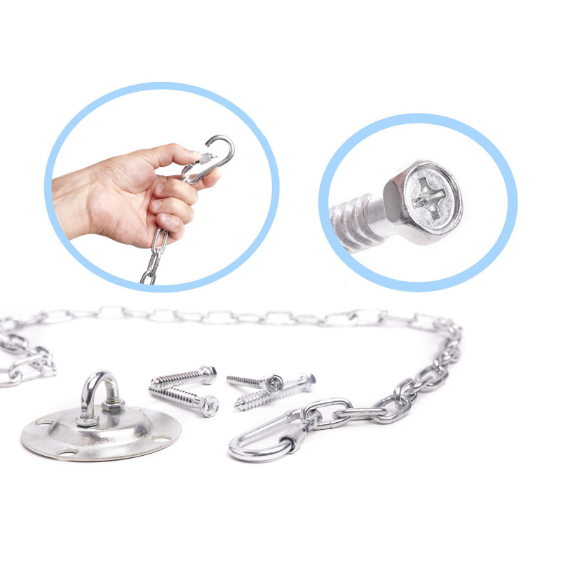 Setul de montaj pentru leagan sau hamac ofera o fixare sigura si durabila, fiind ideal pentru instalarea in lemn sau beton . Fabricat din otel zincat rezistent , suporta o greutate de pana la 200 kg , fiind perfect pentru hamace, leagane tip cuib sau scaune suspendate.