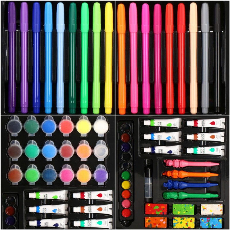 Inchidere usoara si sigura cu buton Setul de arta este ascuns in intregime in valiza, care a fost produsa in mod estetic. Cand ii deschideti interiorul, veti vedea ca are doua niveluri laterale suplimentare! Datorita acestei solutii, gazduieste si mai multe accesorii de pictura pentru tanarul artist. Copilul mic o poate lua cu incredere cu el oriunde cu ajutorul manerului de transport. La gradinita, la bunici, in vacanta sau chiar in aer liber. Fiecare parinte va observa ca, la orice varsta, un copil deseneaza diferit, are o mai buna prindere a creionului sau este mai fluent cu pensula. Cu setul de arta, puteti sustine dezvoltarea copilului dumneavoastra incepand cu varsta de 3 ani! Mai mult, crearea de desene il va ajuta, de asemenea, pe micutul dvs. sa isi gestioneze mai bine emotiile, transferandu-le pe o bucata de hartie.