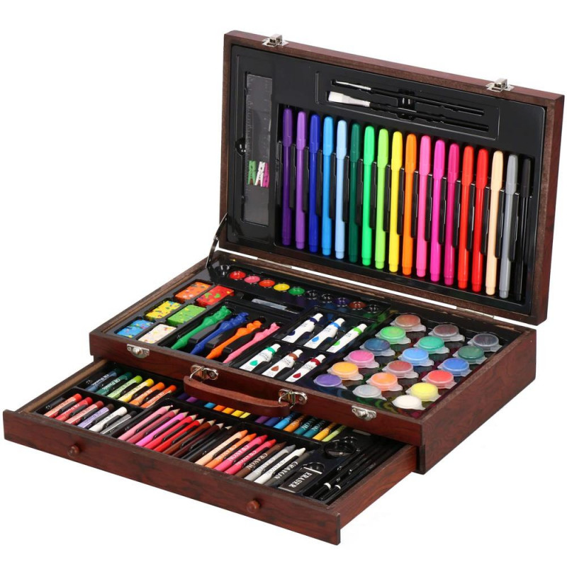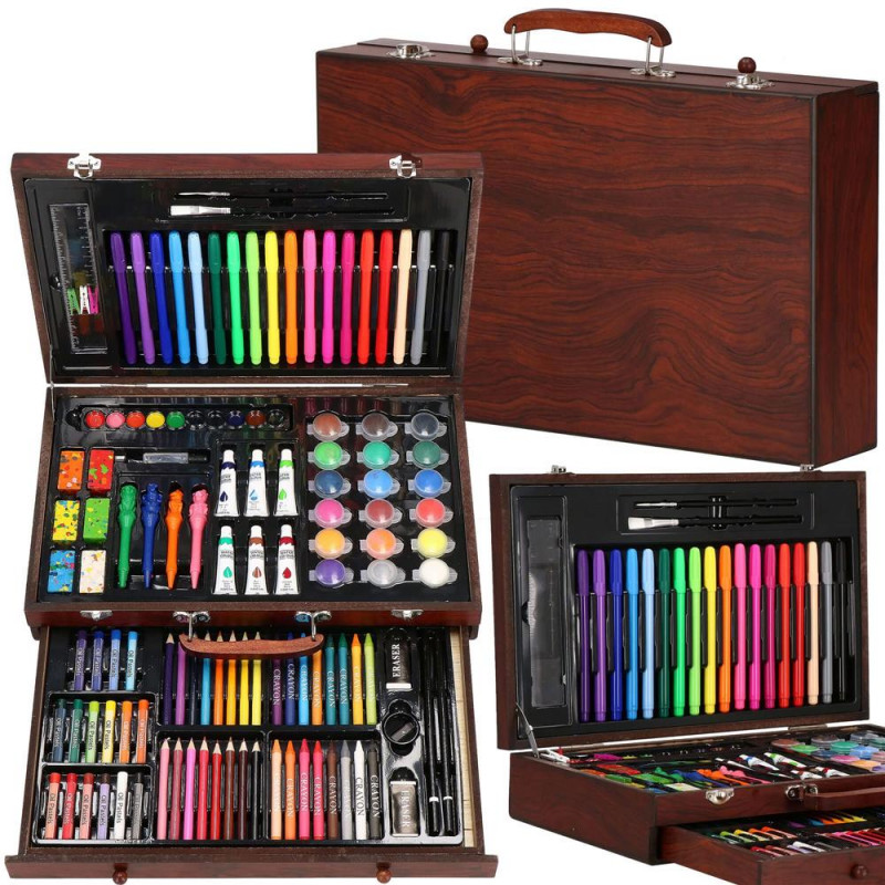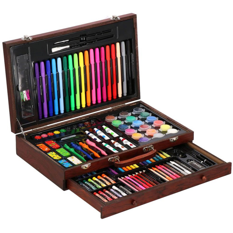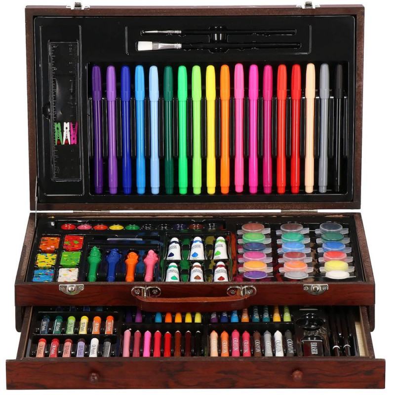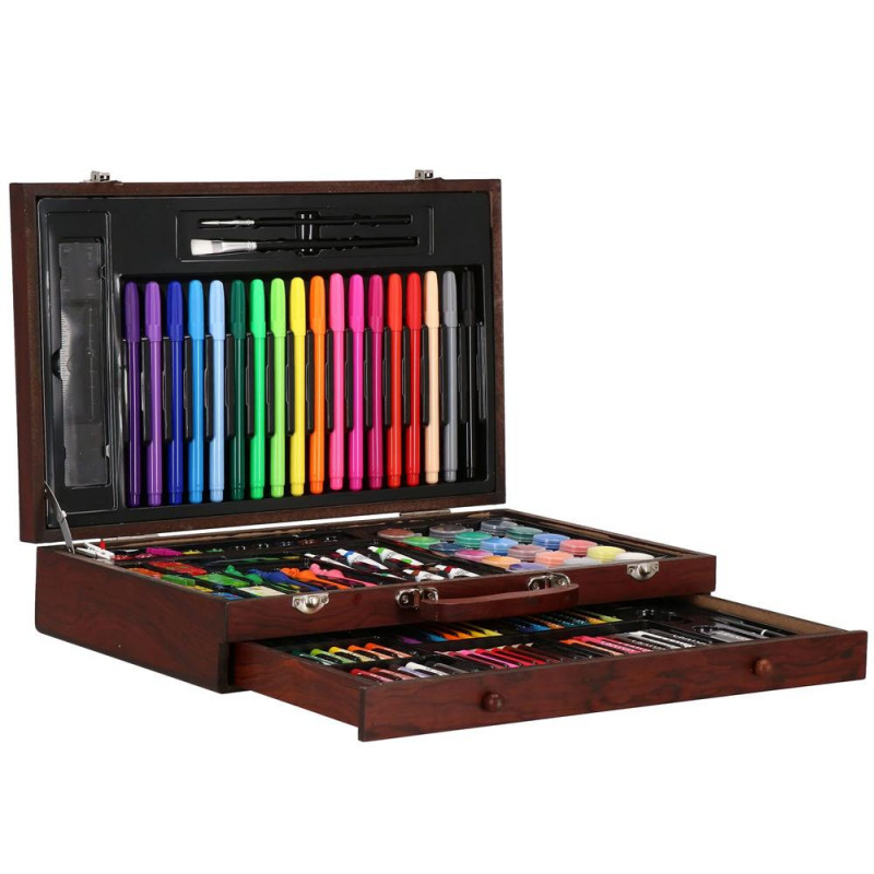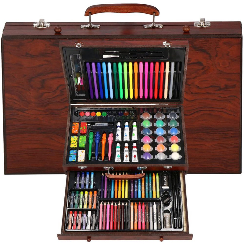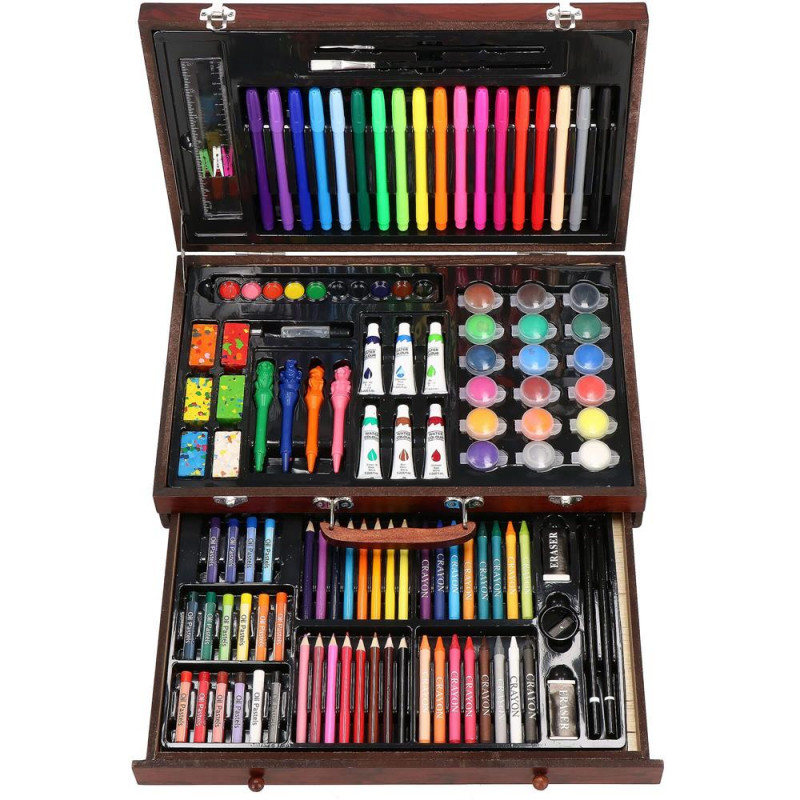 1x cutie de depozitare din lemn cu sertar Avand toate accesoriile necesare pentru desen intr-un singur loc, tu si micutul tau nu va trebui sa cautati creionul preferat sau culoarea necesara de vopsea acrilica prin toata camera. Depozitati totul impreuna in husa atunci cand se termina timpul de joaca, astfel incat accesoriile sa poata astepta in siguranta pentru urmatoarea lor utilizare.