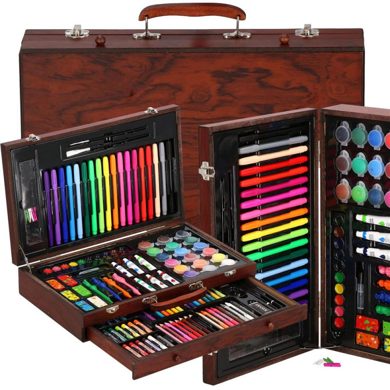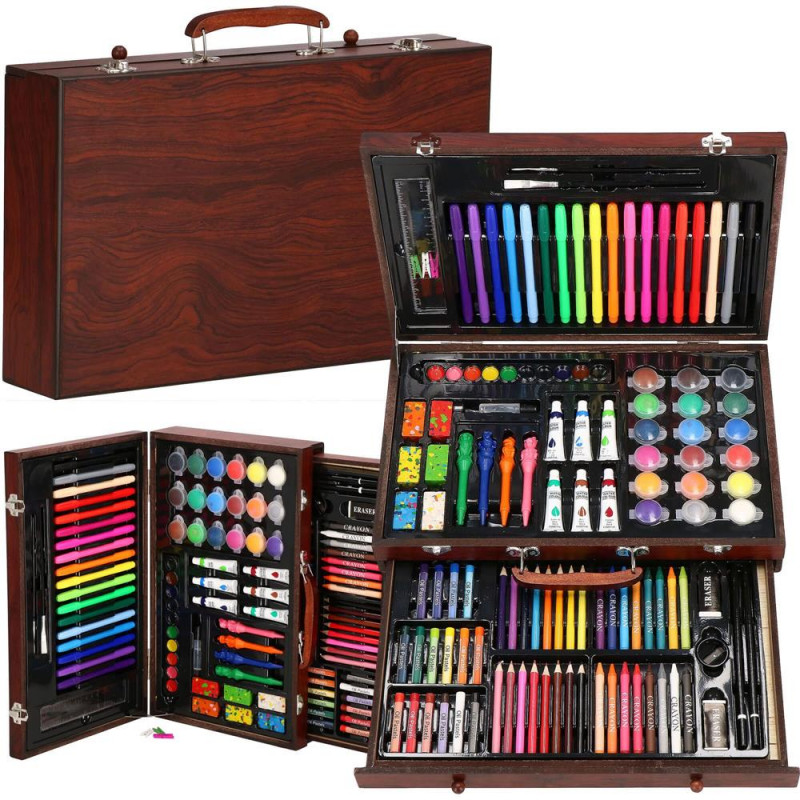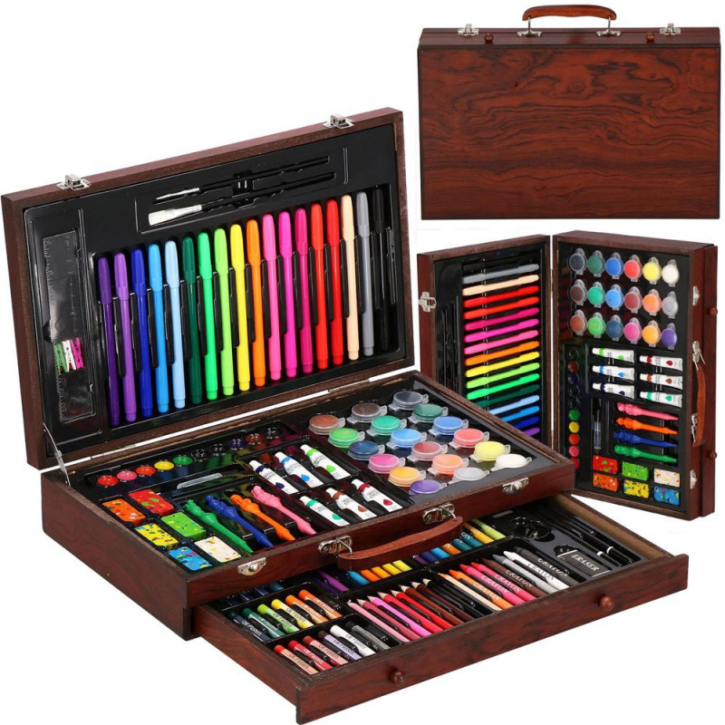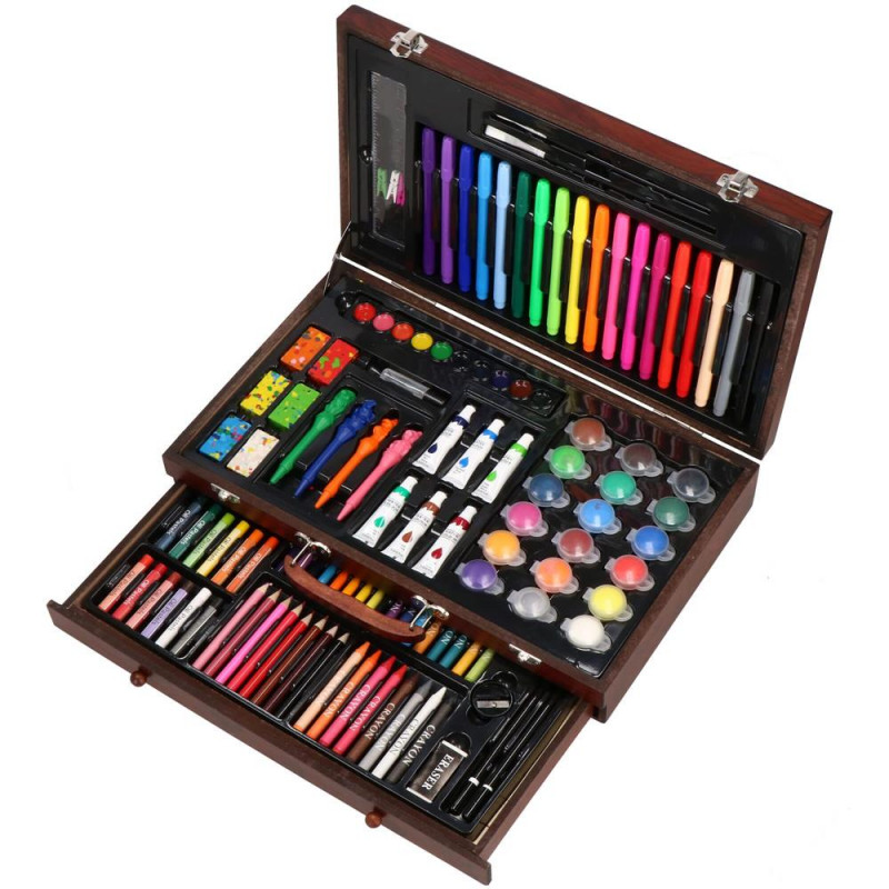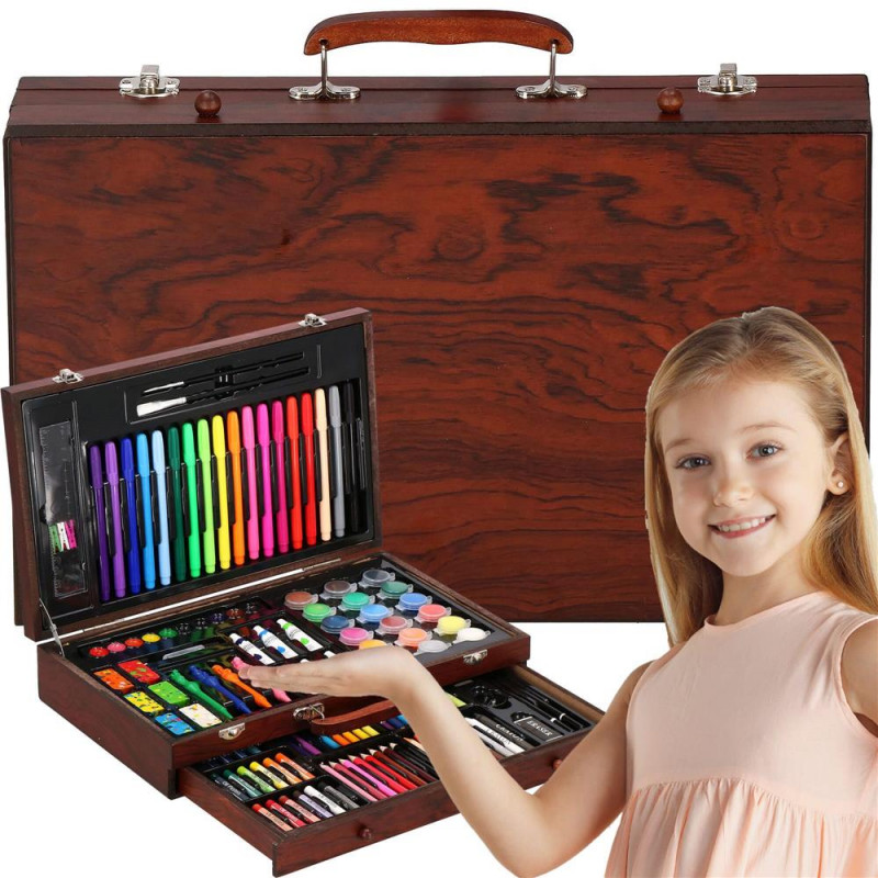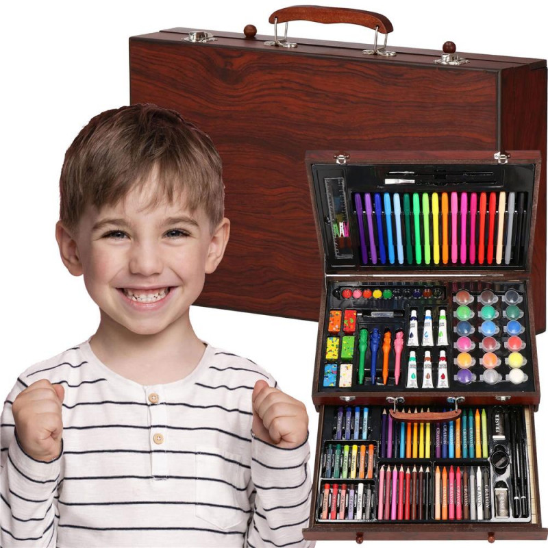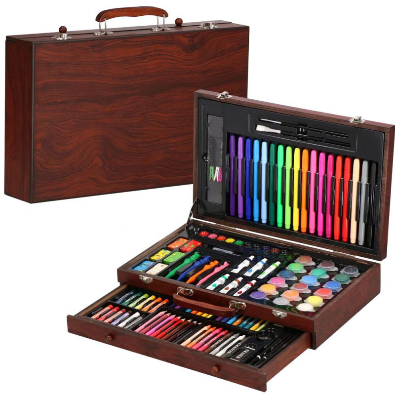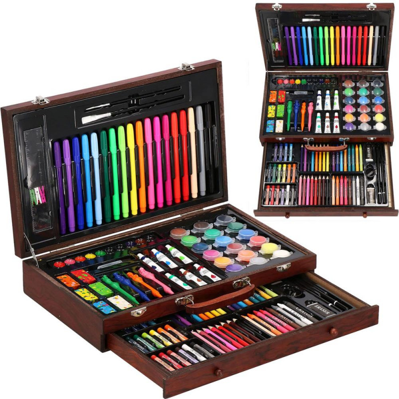 1x cutie de depozitare din lemn cu sertar Avand toate accesoriile necesare pentru desen intr-un singur loc, tu si micutul tau nu va trebui sa cautati creionul preferat sau culoarea necesara de vopsea acrilica prin toata camera. Depozitati totul impreuna in husa atunci cand se termina timpul de joaca, astfel incat accesoriile sa poata astepta in siguranta pentru urmatoarea lor utilizare.