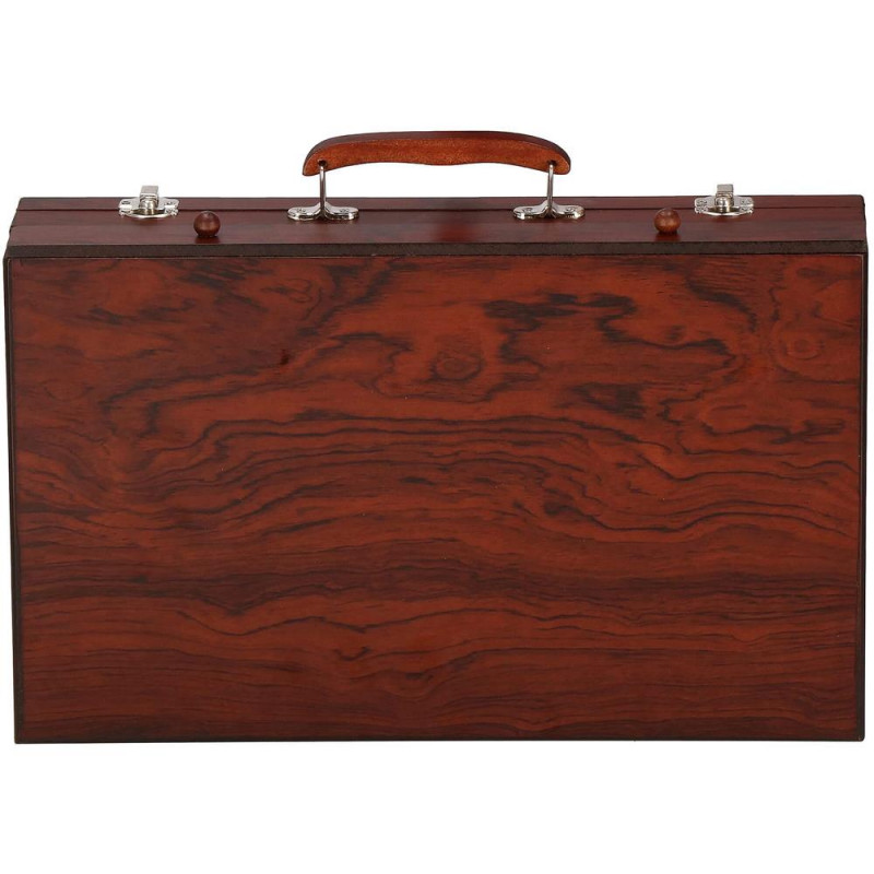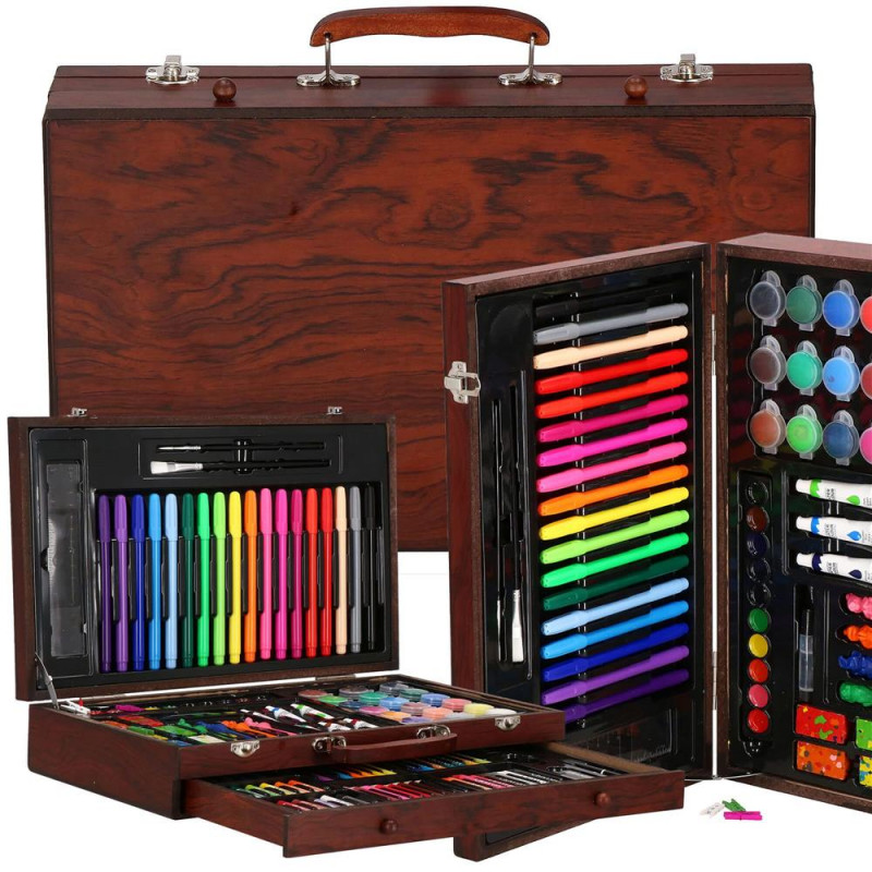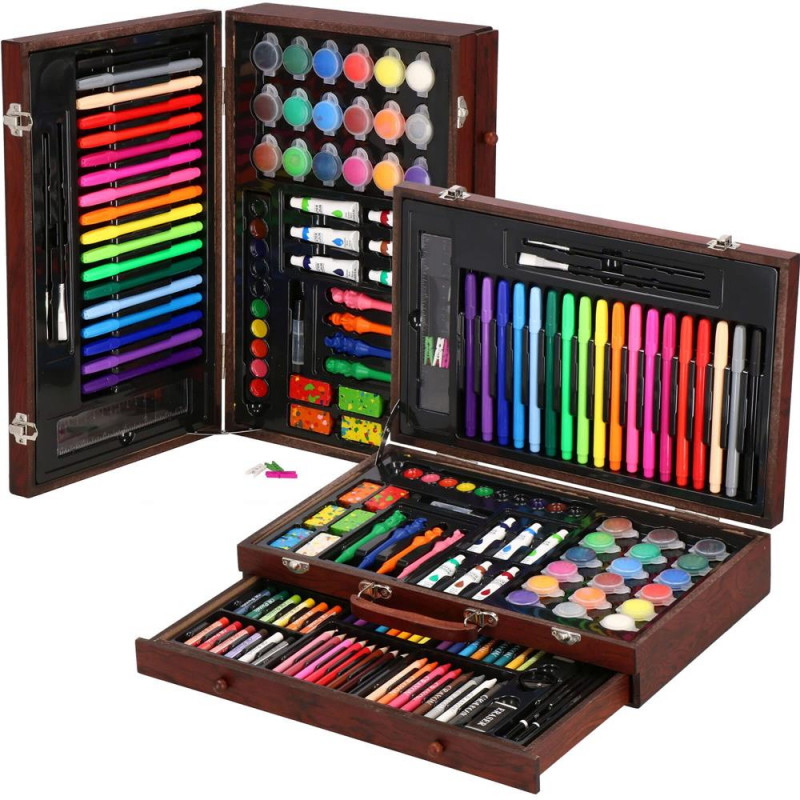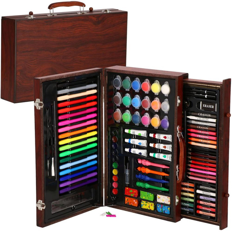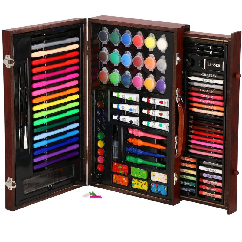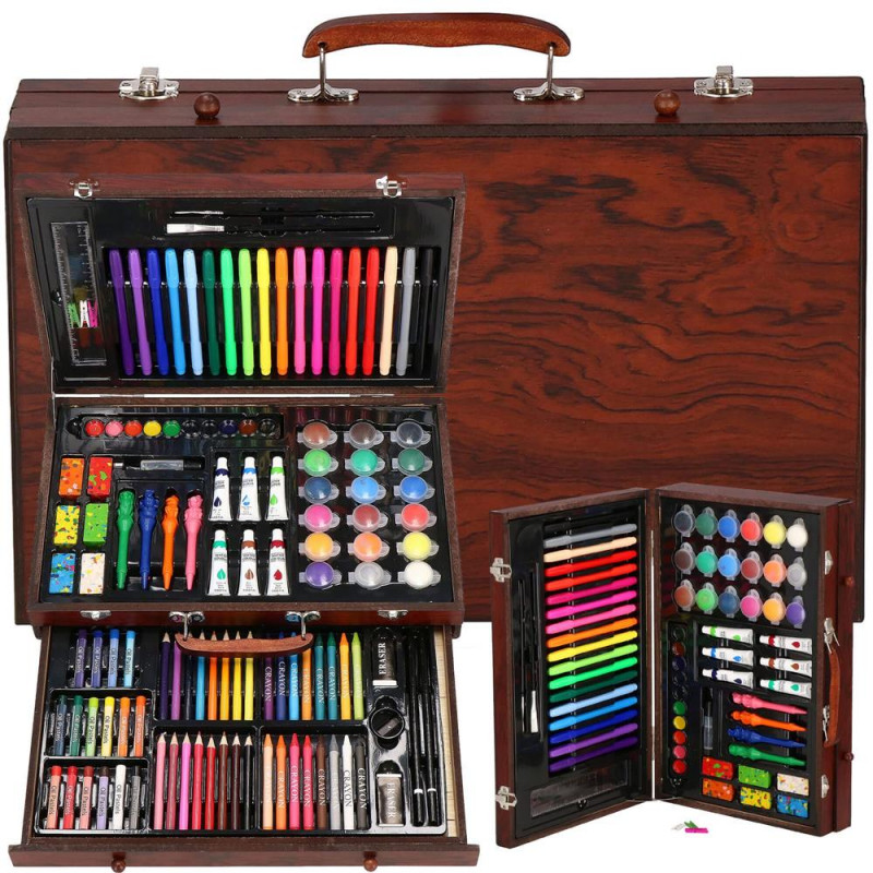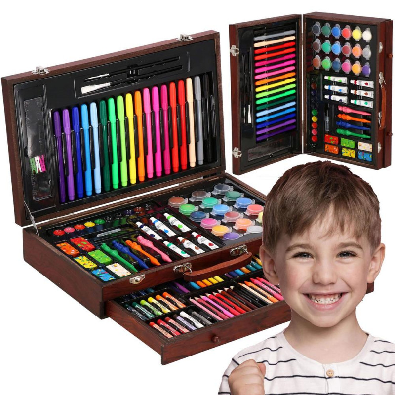 1x cutie de depozitare din lemn cu sertar Avand toate accesoriile necesare pentru desen intr-un singur loc, tu si micutul tau nu va trebui sa cautati creionul preferat sau culoarea necesara de vopsea acrilica prin toata camera. Depozitati totul impreuna in husa atunci cand se termina timpul de joaca, astfel incat accesoriile sa poata astepta in siguranta pentru urmatoarea lor utilizare.