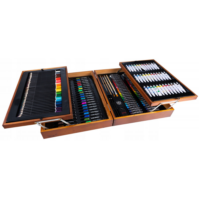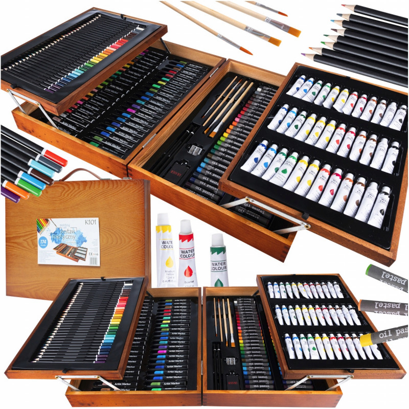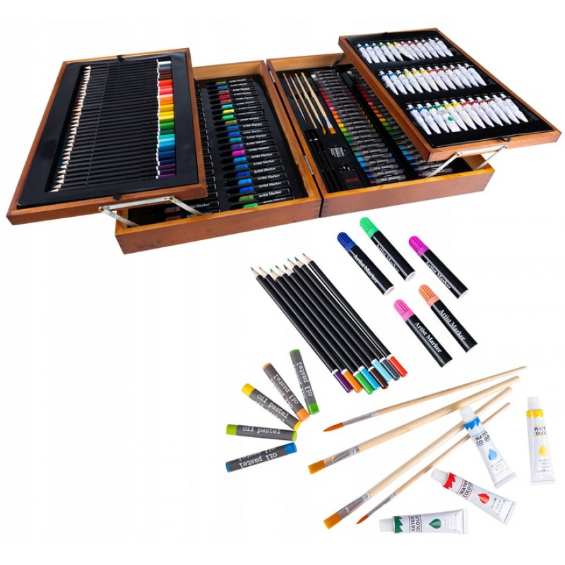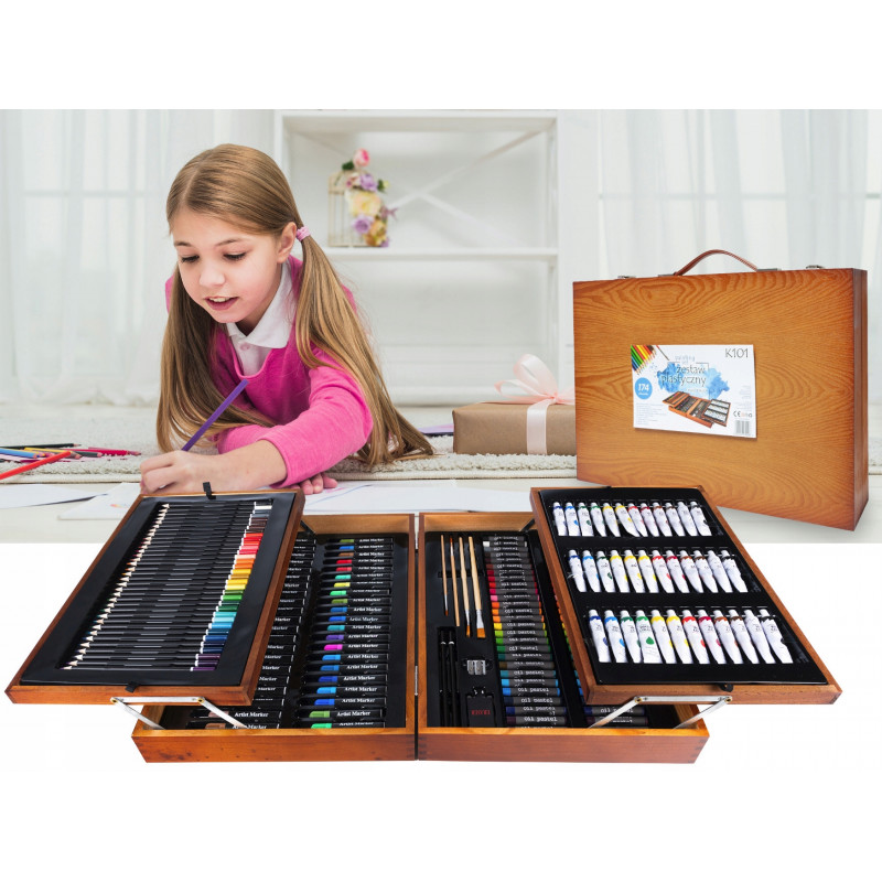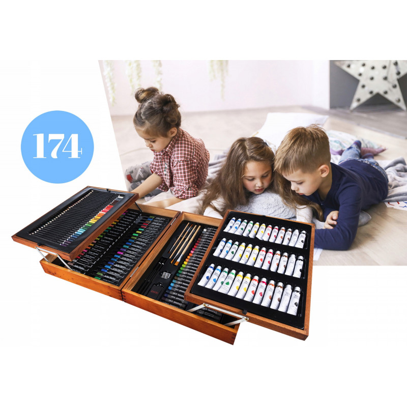 Setul de arta are un total de 174 de elemente! Datorita diverselor accesorii pentru desen sau pictura, cel mai tanar membru al familiei isi va trezi creativitatea si va crea minunate opere de arta.