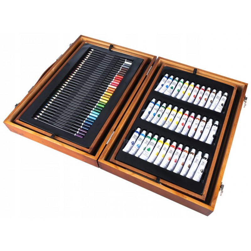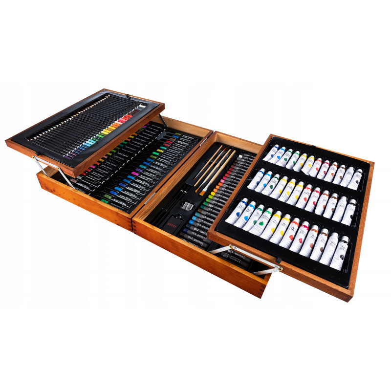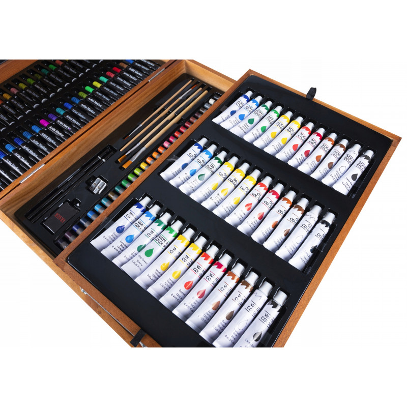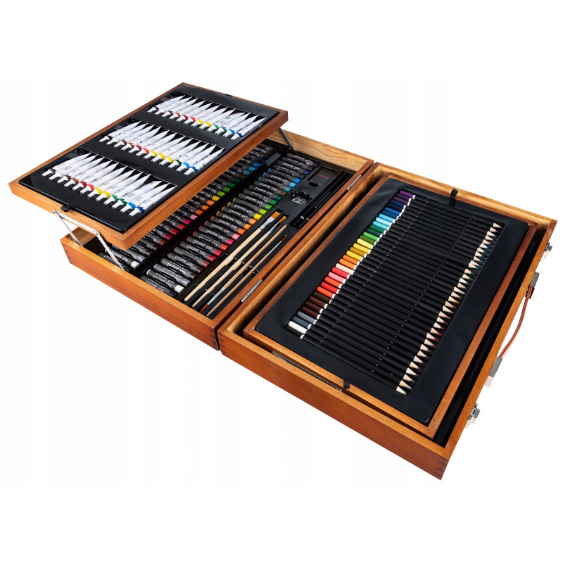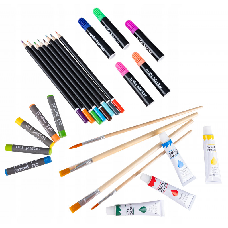 Setul de arta are un total de 174 de elemente! Datorita diverselor accesorii pentru desen sau pictura, cel mai tanar membru al familiei isi va trezi creativitatea si va crea minunate opere de arta.
