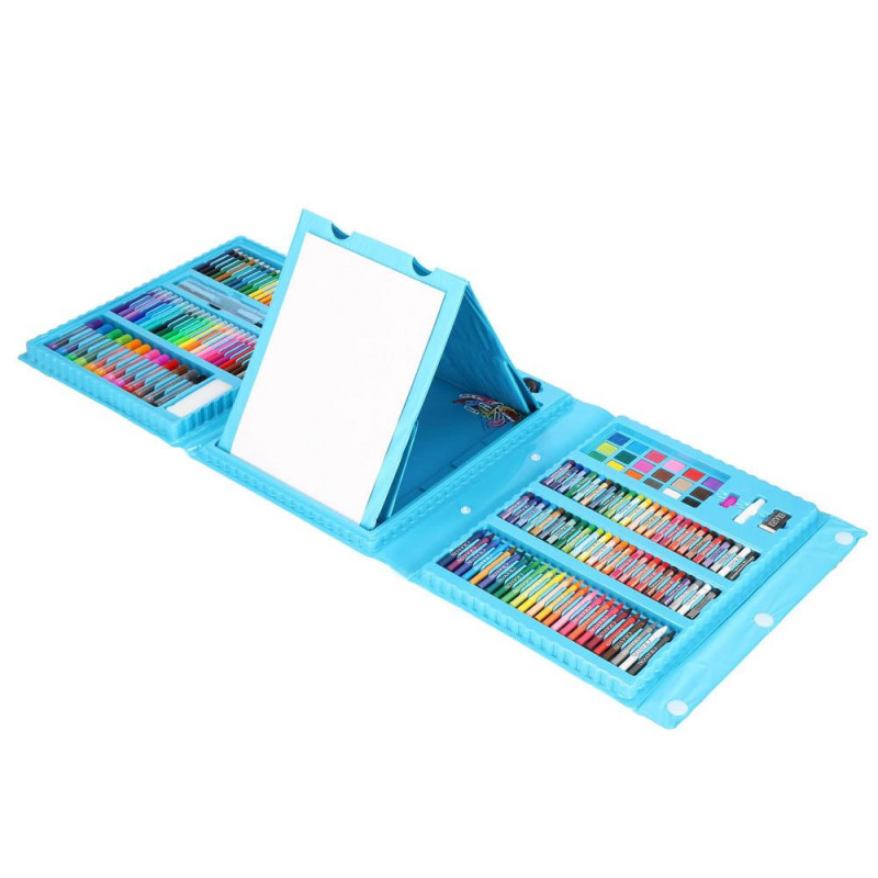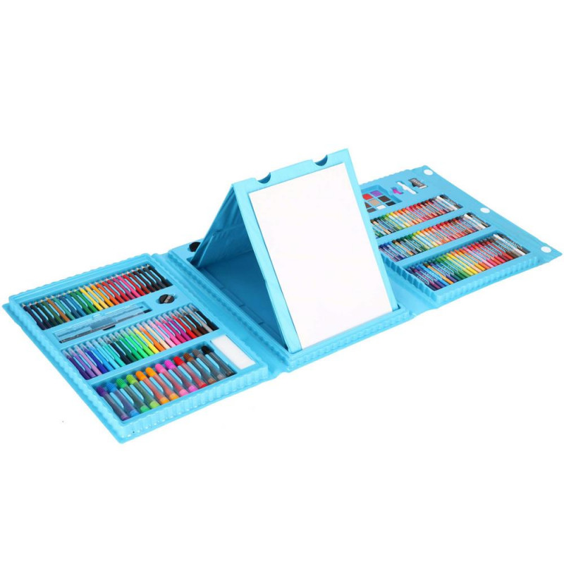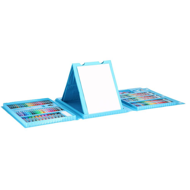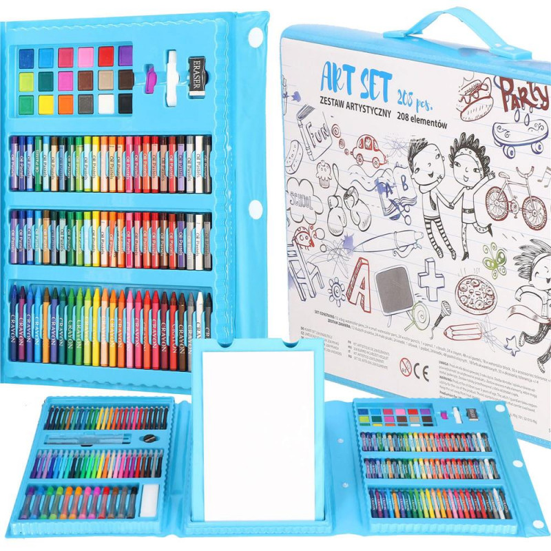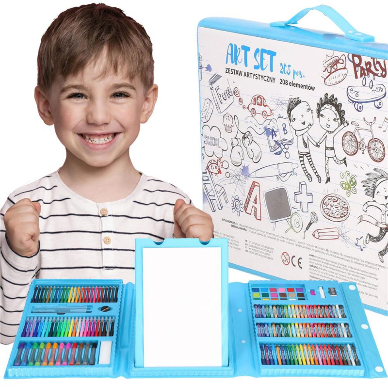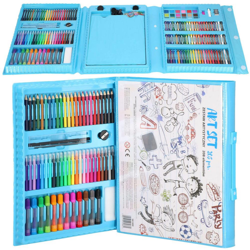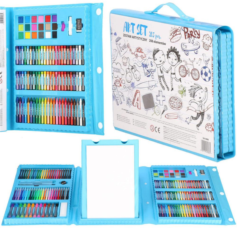 Pliere: intr-o valiza cu maner de transport Setul de arta are un total de 208 de elemente! Datorita diverselor accesorii pentru desen sau pictura, cel mai tanar membru al familiei isi va trezi creativitatea si va crea minunate opere de arta.