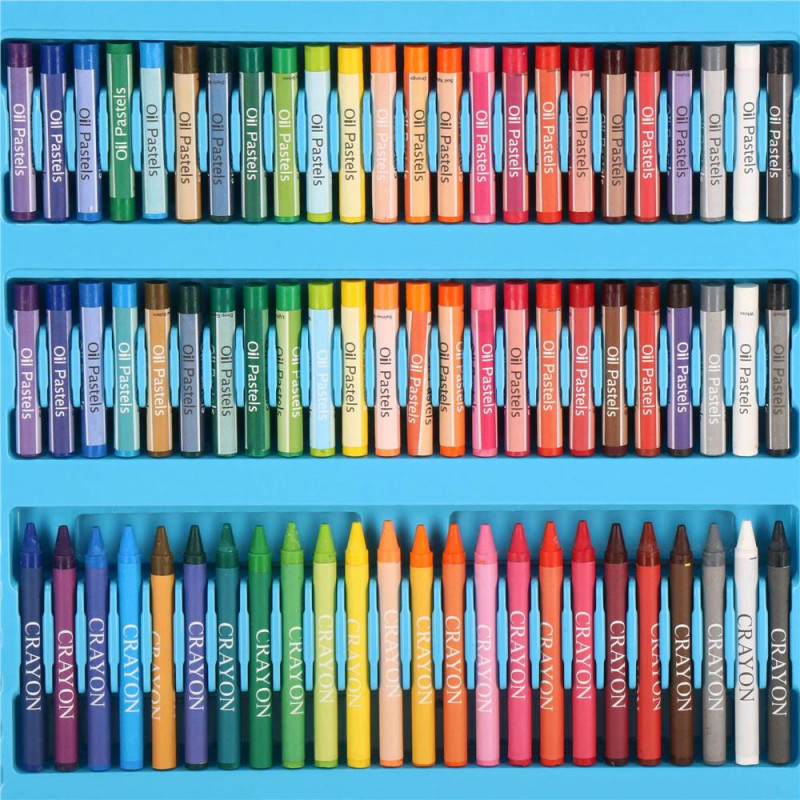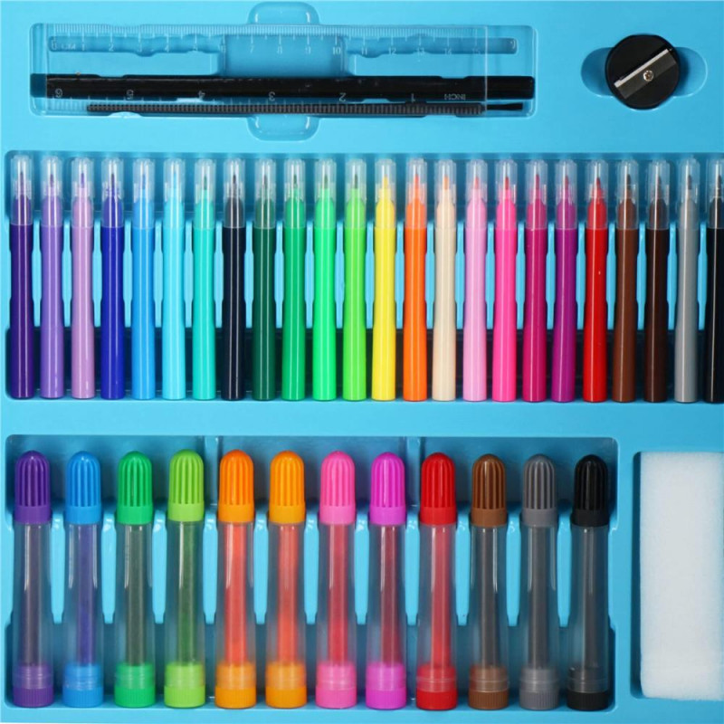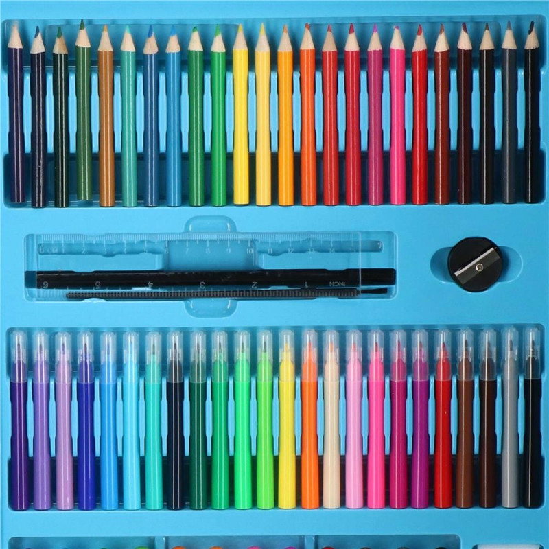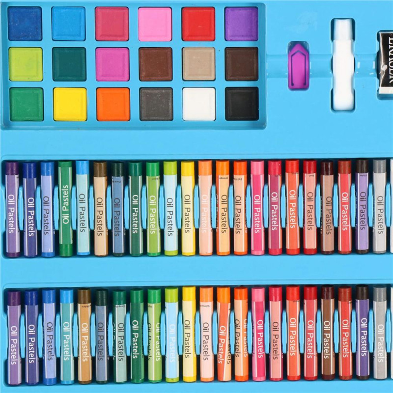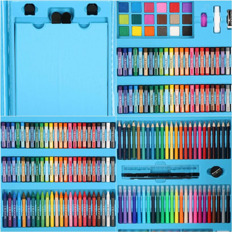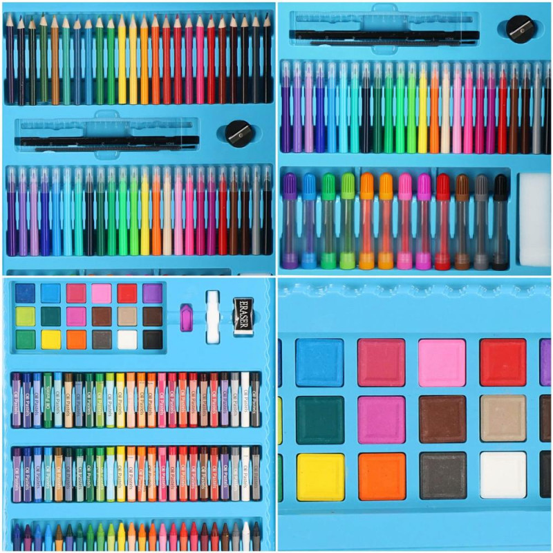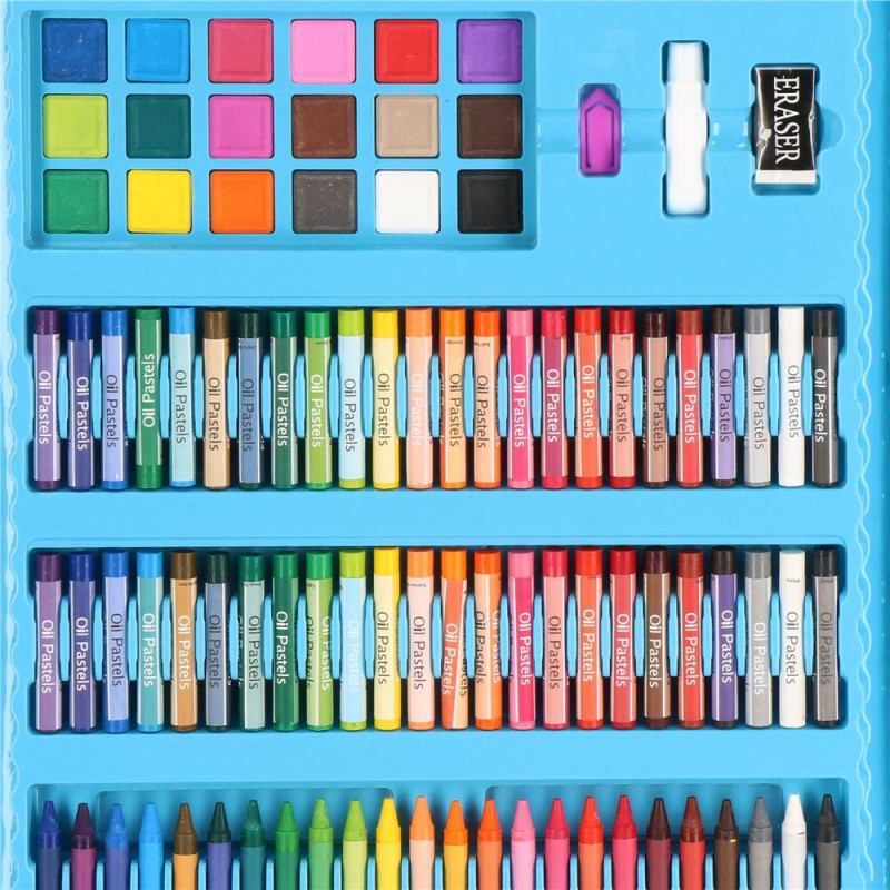Pliere: intr-o valiza cu maner de transport Setul de arta are un total de 208 de elemente! Datorita diverselor accesorii pentru desen sau pictura, cel mai tanar membru al familiei isi va trezi creativitatea si va crea minunate opere de arta.