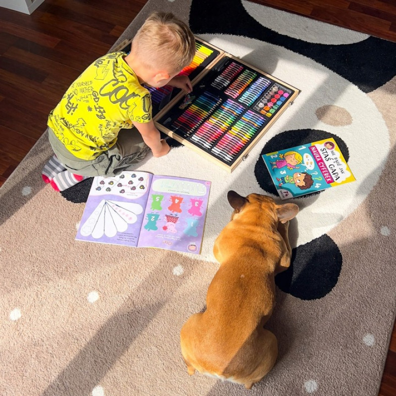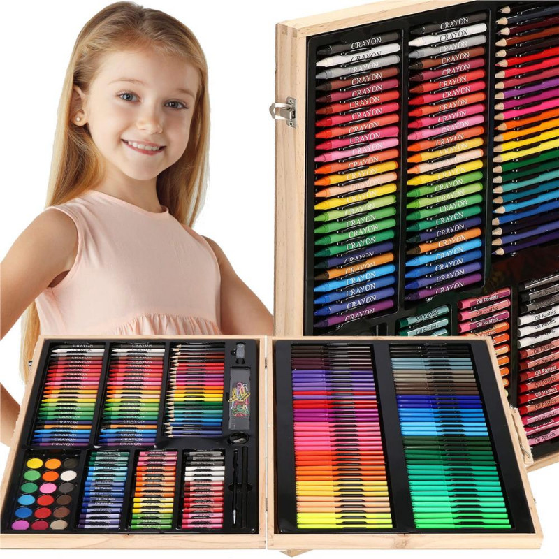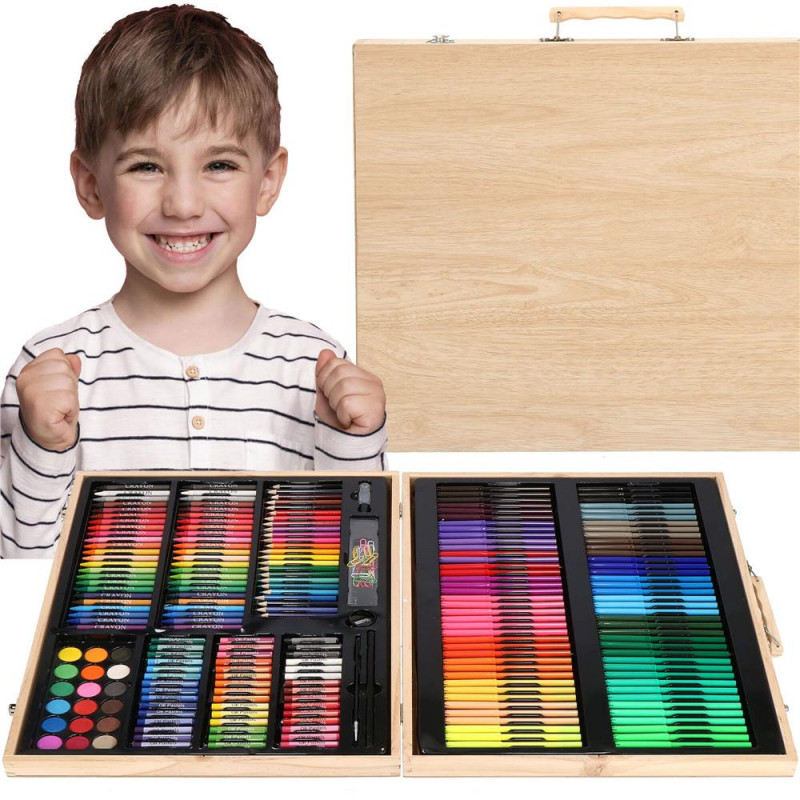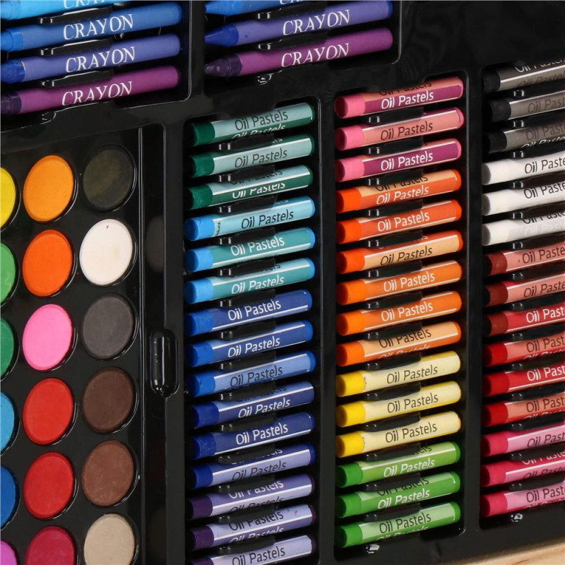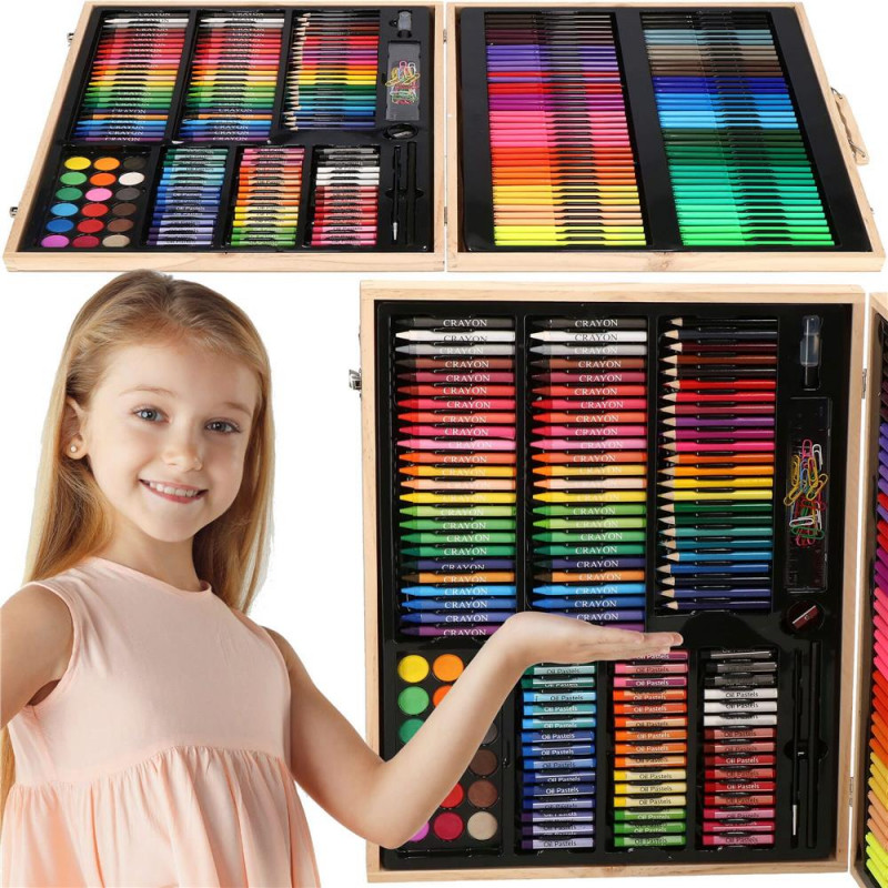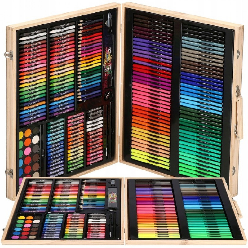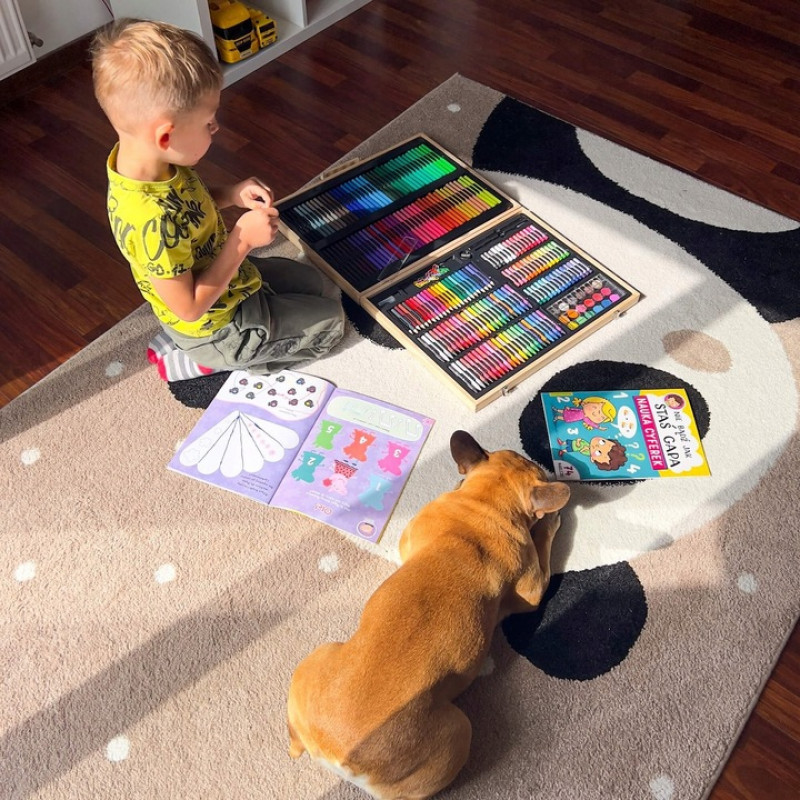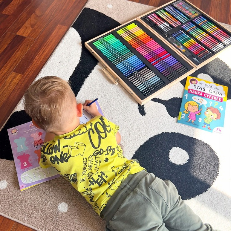 Inchidere usoara si sigura cu buton Setul de arta este ascuns in intregime in valiza, care a fost produsa in mod estetic. Copilul mic o poate lua cu incredere cu el oriunde cu ajutorul manerului de transport. La gradinita, la bunici, in vacanta sau chiar in aer liber. Fiecare parinte va observa ca, la orice varsta, un copil deseneaza diferit, are o mai buna prindere a creionului sau este mai fluent cu pensula. Cu setul de arta, puteti sustine dezvoltarea copilului dumneavoastra incepand cu varsta de 3 ani! Mai mult, crearea de desene il va ajuta, de asemenea, pe micutul dvs. sa isi gestioneze mai bine emotiile, transferandu-le pe o bucata de hartie.