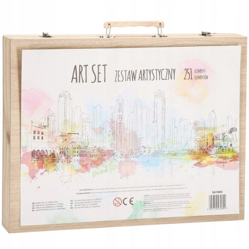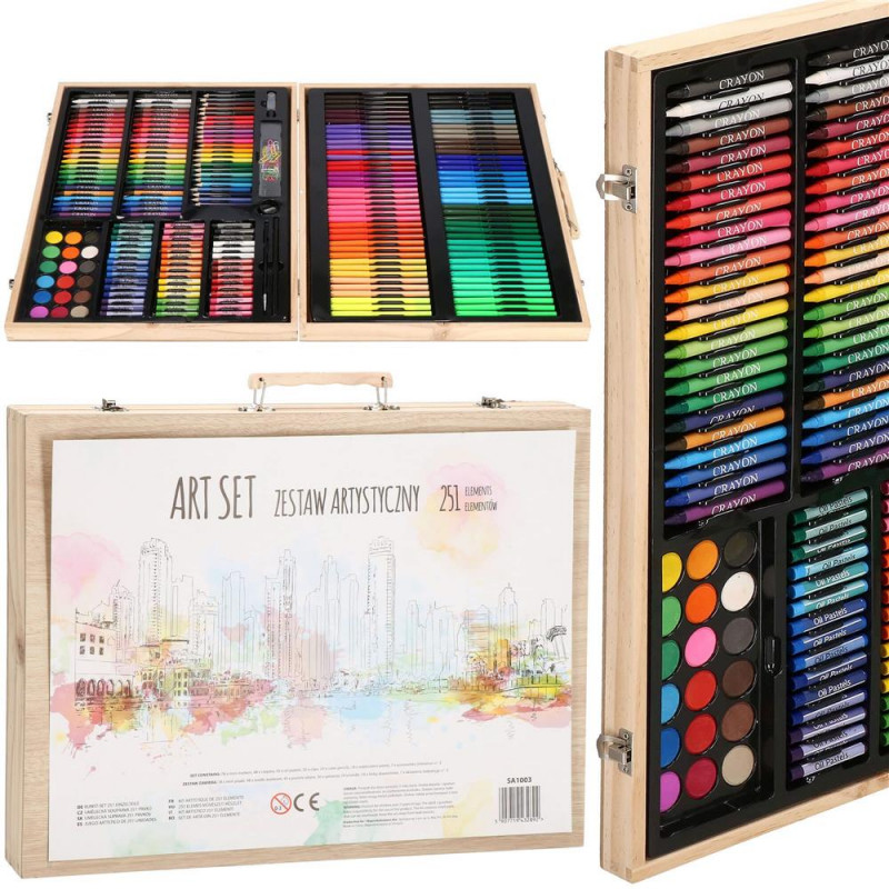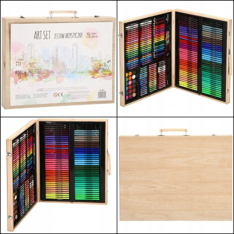 Adancime: 5,5 cm Setul de arta are un total de 251 de elemente! Datorita diverselor accesorii pentru desen sau pictura, cel mai tanar membru al familiei isi va trezi creativitatea si va crea minunate opere de arta.